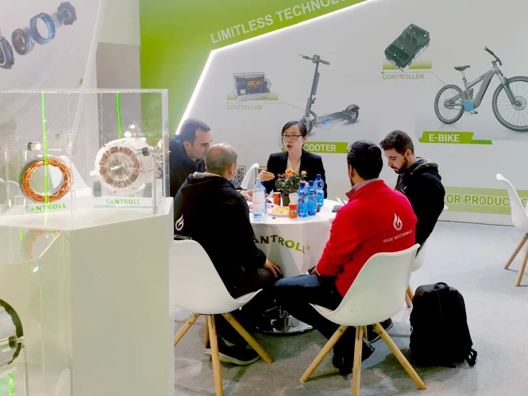 具有小尺寸优势的Type-C控制器、大功率电摩控制器、集蓝牙和陀螺仪为一体的模块单元、智能碟刹锁等,吸引了众多自行车爱好者和同行前来参观和交流,现场气氛非常火热。