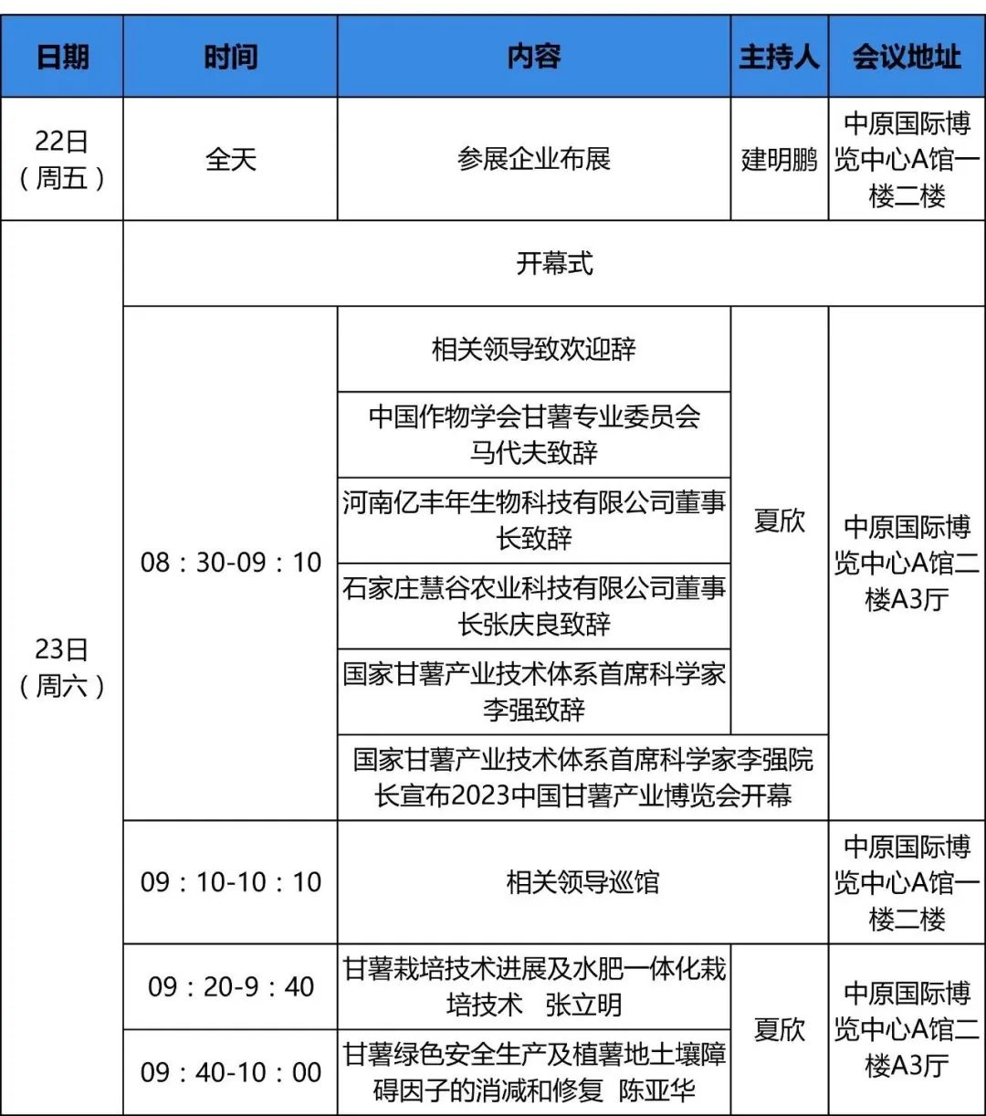 为不错过精彩,建议路程较远的参会朋友22日下午抵达郑州,2023年12月22日参展企业布展,23日上午8点30分博览会准时开幕,24日下午5点闭幕。