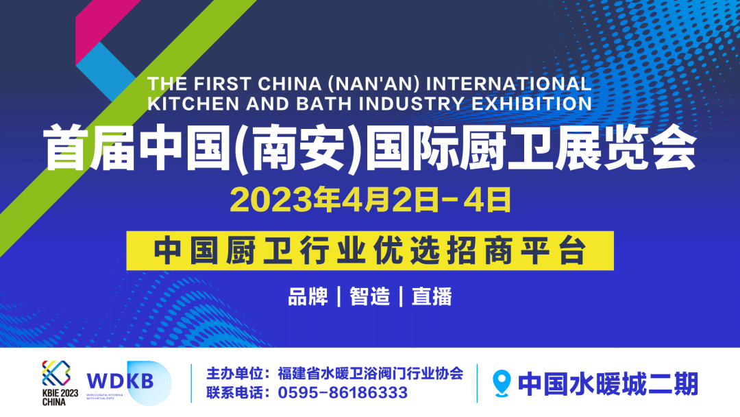 以“品牌·智造·直播”为主题的2023中国(南安)国际厨卫展览会(KBIE·CHINA)将于2023年4月2日-4日在中国水暖城二期盛大举办!