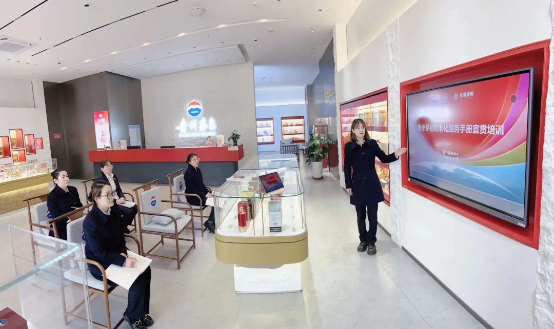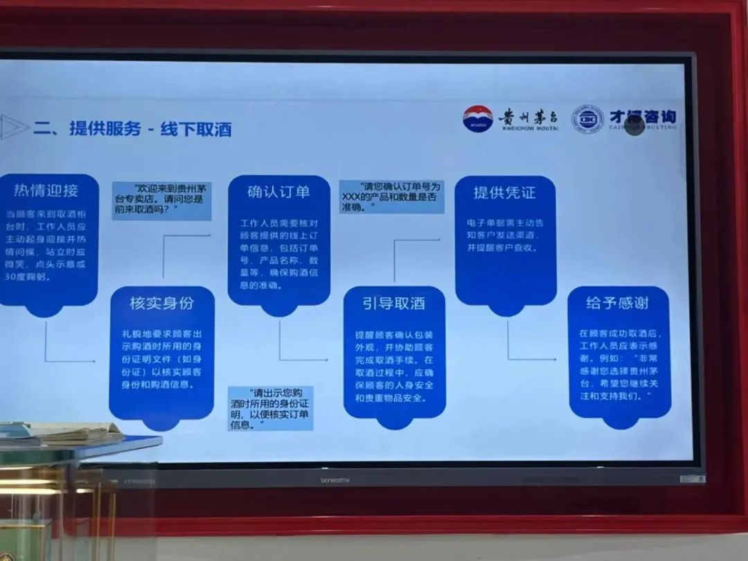 为规范贵州茅台专卖店所有工作人员的服务行为,给与顾客高品质的门店购酒体验。兰州酱酒传承商贸有限公司积极贯彻落实茅台“美服务、美生活、美时代、美产品”的服务宗旨暨甘肃省区第四季度工作会议精神,店长于12月18日至19日组织全体员工开展《贵州茅台标准化服务手册》的培训学习。