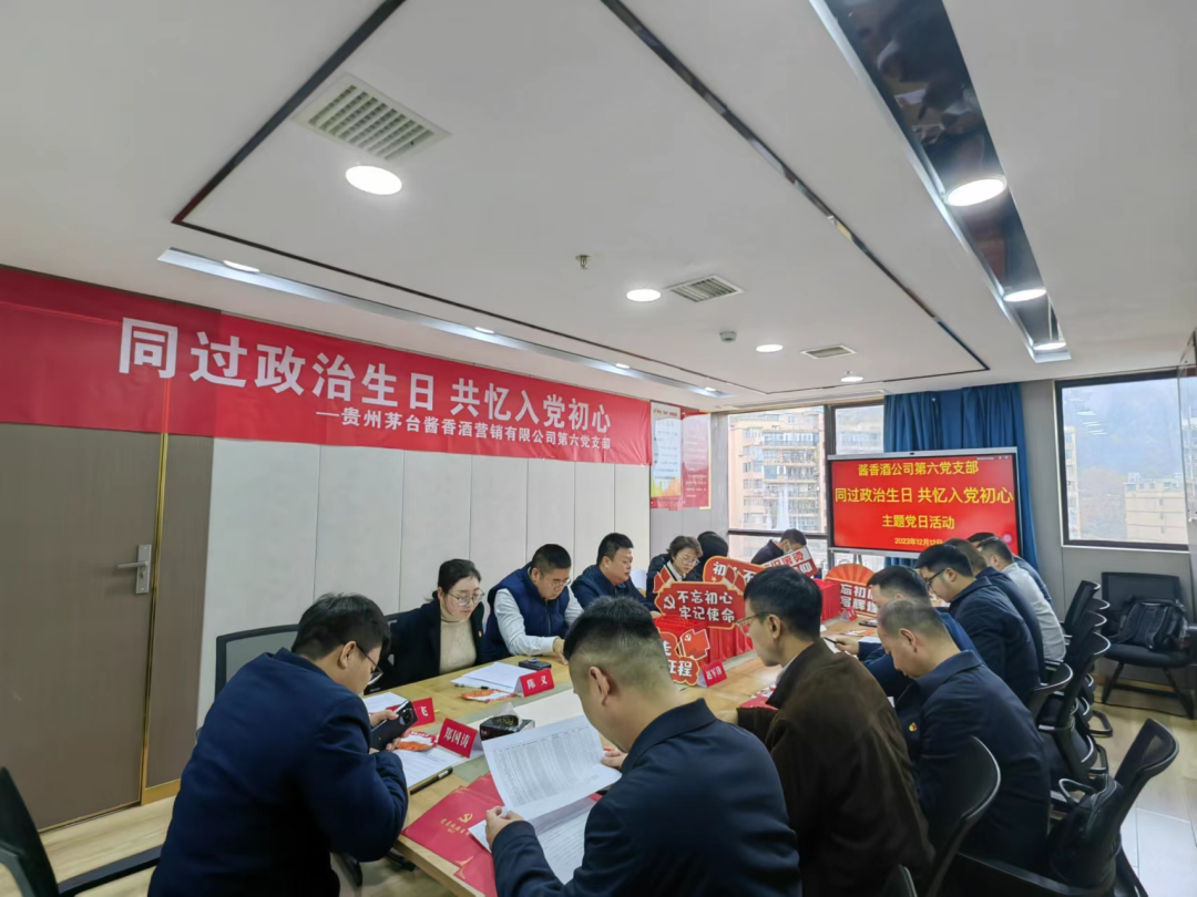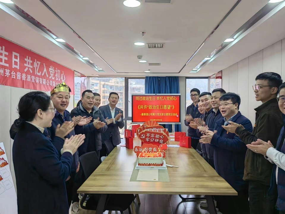 为扎实推进党员队伍建设,不断强化党员身份意识和责任意识,激励党员不忘初心、牢记使命,奋发有为。12月中旬,酱香酒公司第六党支部在遵义市开展了“同过政治生日·共忆入党初心”主题党日活动,集中为支部党员过“政治生日”。第六党支部全体党员(含预备党员)、发展对象、入党积极分子参加活动。
