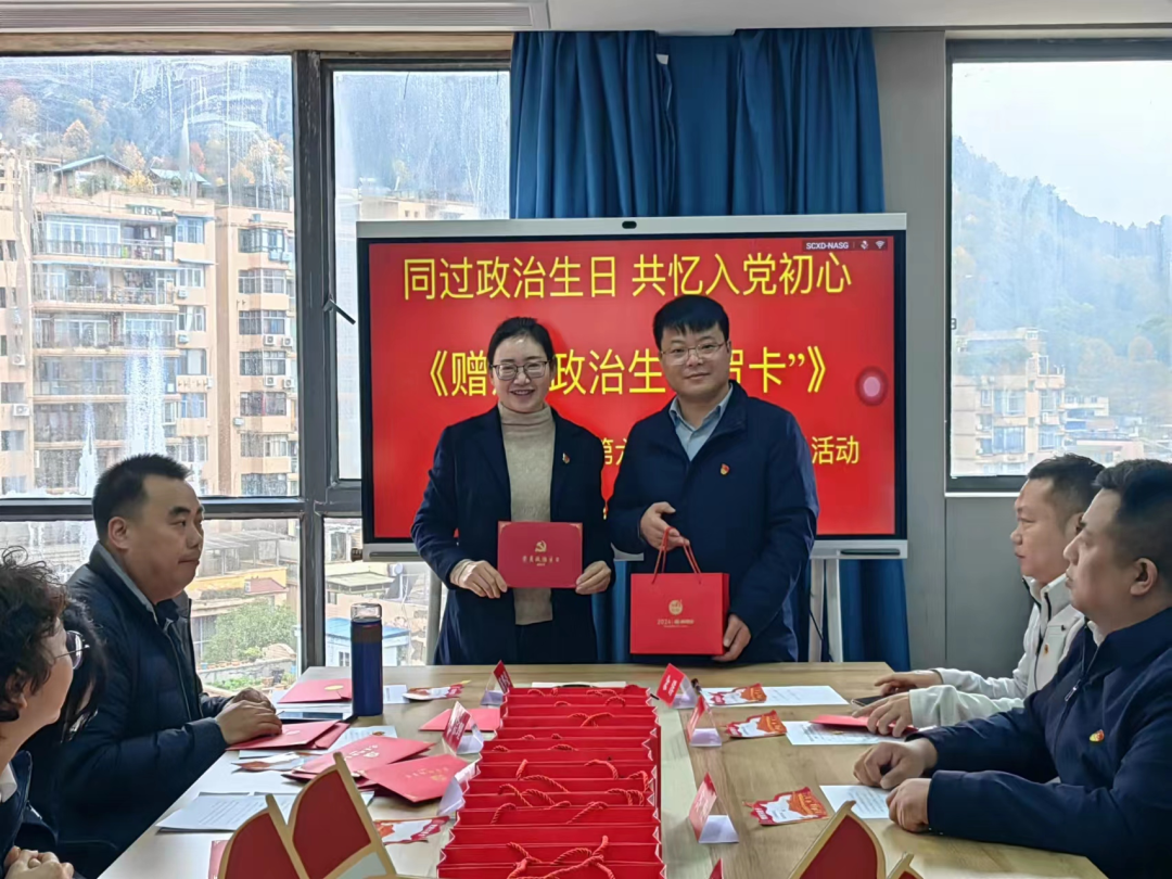 赠送一份生日贺卡。活动现场,由支部书记郑国涛为大家赠送“政治生日贺卡”,激励大家永葆初心,砥砺前行。当党员同志们接到记载着自己入党日期、入党誓词及勉励祝福语的“政治生日纪念卡”时,感动之情溢于言表。大家纷纷表:无论何时何地都要时刻牢记自己的“第一身份”是党员,时刻以党员标准严格要求自己,充分发挥党员先锋模范作用。
