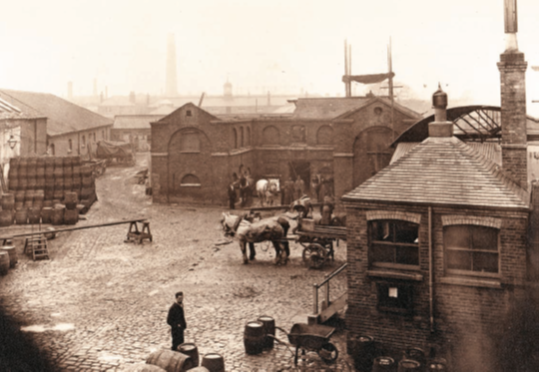 拍摄于19世纪的生产车间因经营战略调整,2006年啤酒厂的原业主关闭了酒厂,该区域也就此被围封在公众的视野之外。自此,伦敦居民就一直期待着这片区域的新生,盼望着这块被王室祝福过的福地能够重新向公众开放。2014年6月,绿地集团正式获得了该地块开发权,项目总占地面积超过3万平方米,由新建部分和传统酿酒厂改建的酿造博物馆组成,开发集高层公寓、保障性住房、商业配套设施于一体的大型住宅社区。经过开发建设,绿地没有辜负伦敦市民及旺兹沃斯区政府的期望,既体现现代生活品质,又充分呼应该区域传统文化的兰姆公馆项目迎来了交付。经过绿地的努力,项目以优异设计施工质量塑造了绿地品牌在英国的形象,成为了中国企业在英国第一个成功交付的住宅开发项目,也是结合当地历史文化、实施城市更新的生动案例,为中国企业在海外的知名度和影响力提升发挥了积极作用。酿造车间得以改建并保留