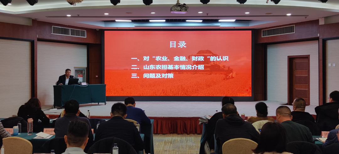 培训班上,刘强作了题为《政策性担保融资 保障农业企业发展》的报告。报告从“农业、金融、财政”等多个维度对山东农担公司发展历程、业务范围等基本情况进行了详细介绍,自成立以来,山东农担公司坚守政策性定位,通过组建专业化队伍、应用大数据深入推进数字化转型,通过创新供应链金融、金融监管仓业务有利破解额度不匹配问题,通过贯彻主动风险理念,创新“政策性担保+财政政策+货币政策+金融科技”运行机制,打造农业金融综合服务生态圈,不断提升农业生产经营主体竞争力,为打造乡村振兴齐鲁样板积极贡献农担力量。