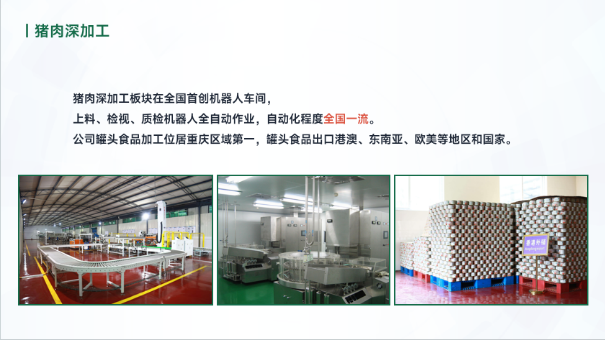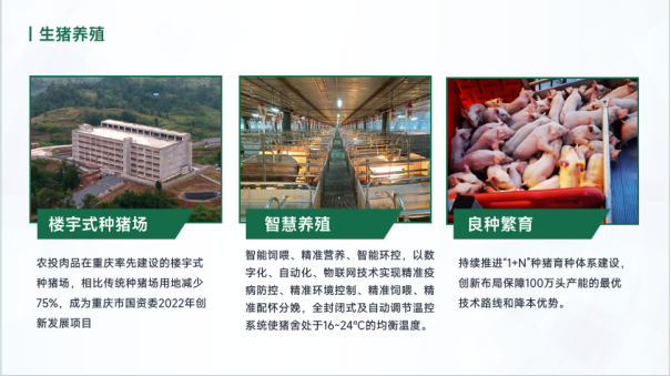 重庆农投肉食品有限公司(以下简称农投肉品)是重庆市农业投集团有限公司的全资子公司,专业从事生猪育种研发、扩繁与育肥养殖、饲料与兽药生产、屠宰及冷鲜肉销售、肉类深加工的生猪全产链企业,也是重庆市生猪全产业链一体化经营唯一的大型国有现代农业企业,重庆市主要保供企业(猪肉),国家农业产业化龙头企业。