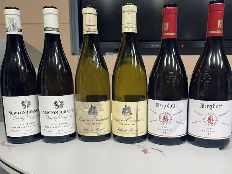 黑皮诺的初味轻盈,如翩跹的舞者,轻柔地滑过味蕾。时间流转,这款葡萄酒渐渐揭开了它丰富的内在层次,逐步展露出深沉的蘑菇气息和浓郁的巧克力风味,宛如秋日森林中的深邃与丰饶。这样的层次感仿佛是文人墨客笔下绵延不绝的情感波澜,一波接一波地在舌尖翻涌,激荡起心海中的想象与思索,引领着我们在味觉的海洋中遨游,探索着未知的风味世界。在课上三款黑皮诺中,品尝勃艮第黑皮诺就像是品尝秋天的雨,低调内敛,散发出清新的樱桃和覆盆子香气。妙的是你一闻便知道是它,湿冷的泥土和烟熏雪茄,衬托出黑松露的醇厚馥郁,像是用皮革手套捧起一大片干枯的树叶挥洒空中,嗅得到老藤深深耕入地底的风土。