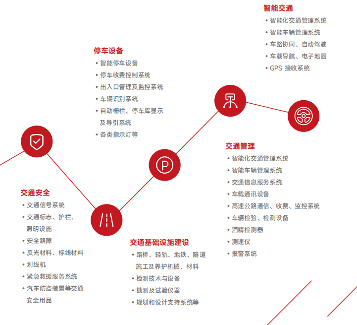 展品覆盖智能交通、交通安全、交通管理、交通基础设施建设和停车设备等五个领域为基础的供应链,打造成为共探发展趋势、对话行业热点、透视产业需求的一体化交流服务平台。