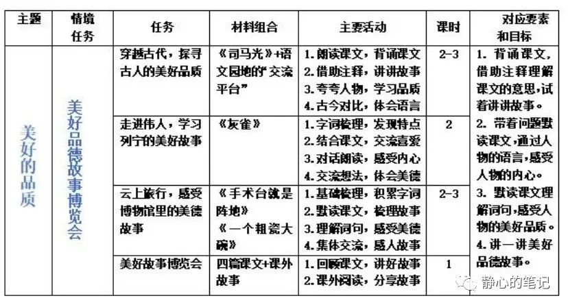 本单元以“美好的品质”为主题,围绕“美好品德故事博览会”这一总任务,设计了“穿越古代,探寻古人的美好品质”、“走进伟人,学习列宁的美好故事”、“云上旅行,感受博物馆里的美德故事”和“美好故事博览会”四个有逻辑关联的子任务。开展文学阅读与创意表达活动,让学生在实践活动中感受人物的美好品质,促进学生的精神成长。