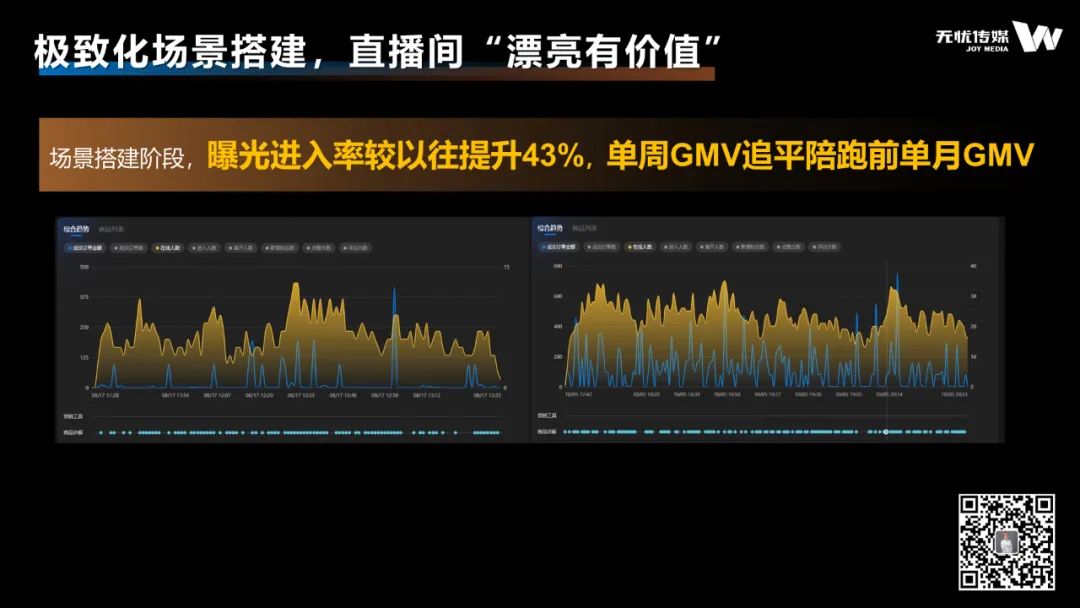 数据也证明此番调整效果显著。经调整,曝光进入率较以往提升43%。单周直播间总GMV产出12.7w,追平6、7月(即无忧团队介入前),7天收益超过30天收益。