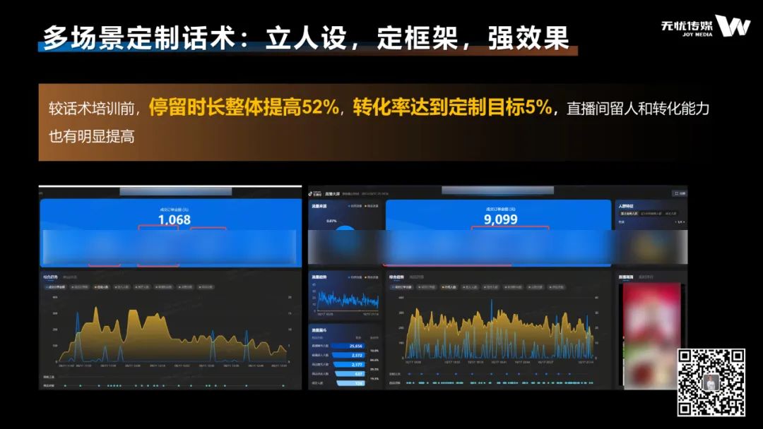 提高了团队的承接流量能力,停留时长提高60%,转化率提升31%,团队能够驾驭的直播场次和业绩也都提高了1倍。