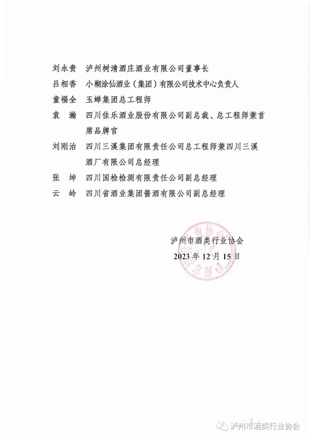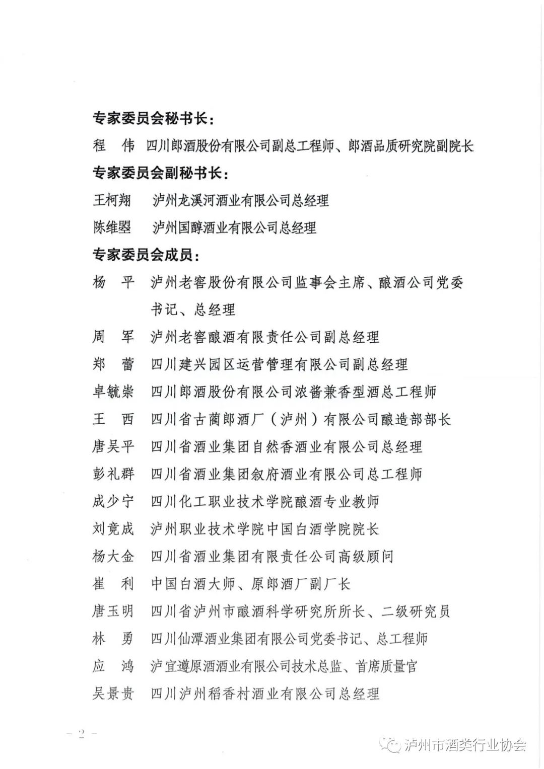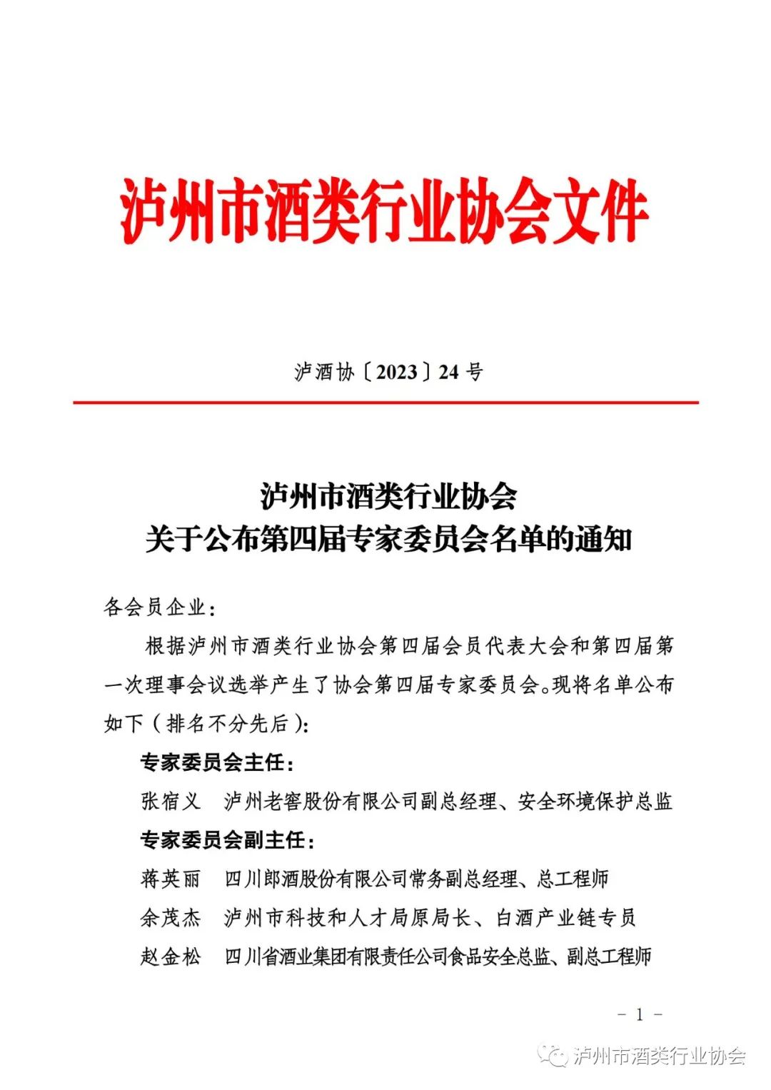 泸州市酒类行业协会关于公布第四届专家委员会名单的通知