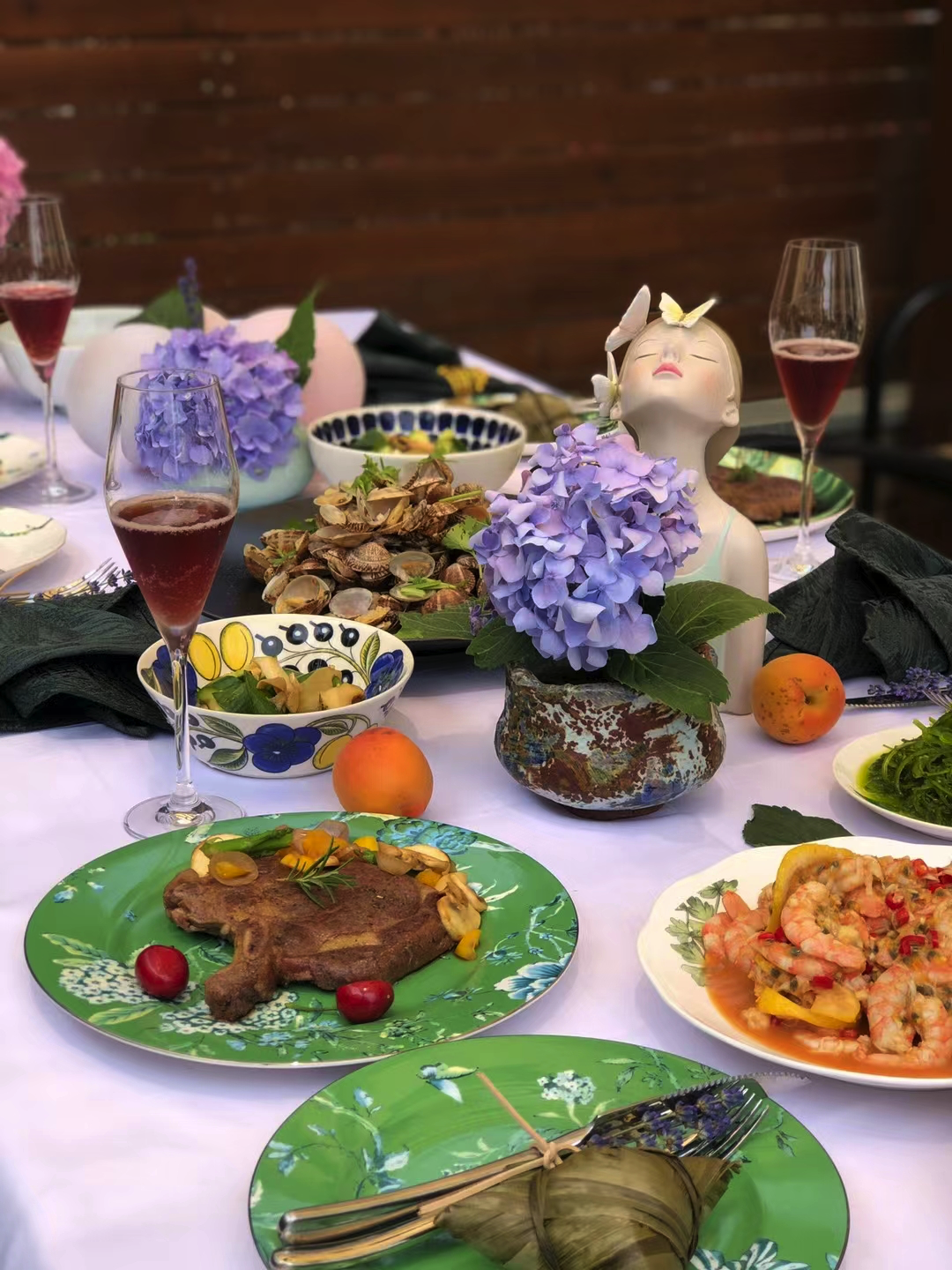 在葡萄酒搭配中餐的选择过程中,除了将菜肴自身的味道趋向、酱汁轻重以及油腻程度作为搭配参考的主要指标之外,葡萄酒的色泽与食材的颜色相宜搭配也会带给人们舒适的视觉效果。如浅黄绿色的长相思白葡萄酒搭配同样鲜绿色的蔬菜,菜未入口就似有一股新鲜、爽口、畅快的感受扑面而来;而色泽浓艳的赤霞珠葡萄酒搭配同样红褐色的牛排,深红中沁透着点点焦黄,厚重中流露着丝丝酥香,浓郁的香气在唇齿之间久久不散。