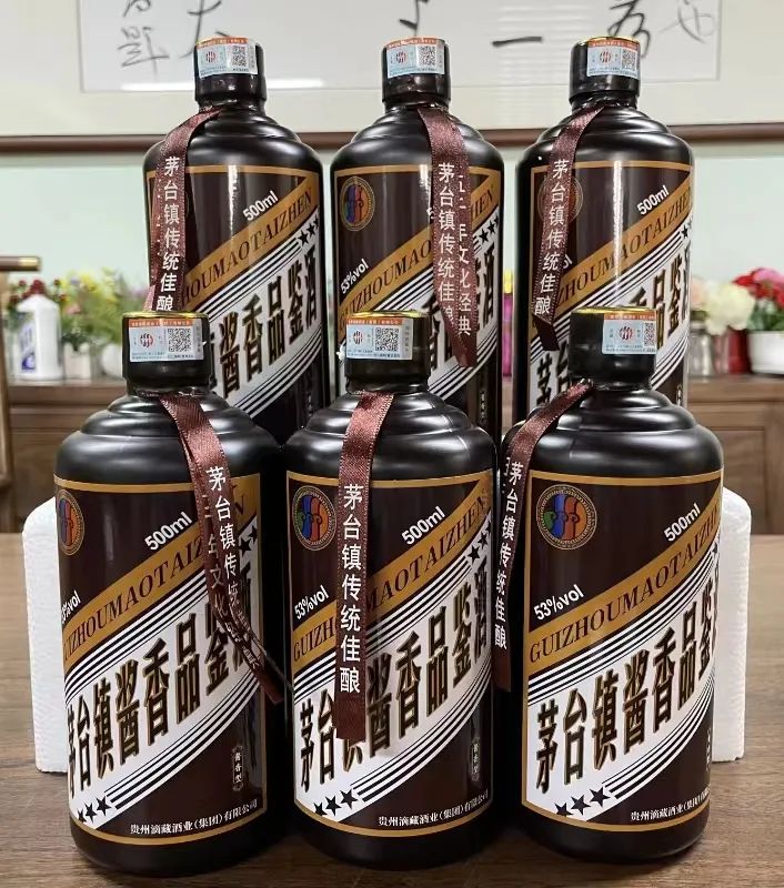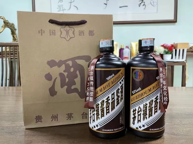 茅台镇酱香品鉴酒---酒体醇厚,绵柔酱香,回味悠长,各种芳香物质含量都比较高,种类多香味丰富,这款品鉴酒,好喝不上头,纯粮酒酿造,历经九次蒸煮,终取好酒,酿一年,藏五年,酒香怡人。
