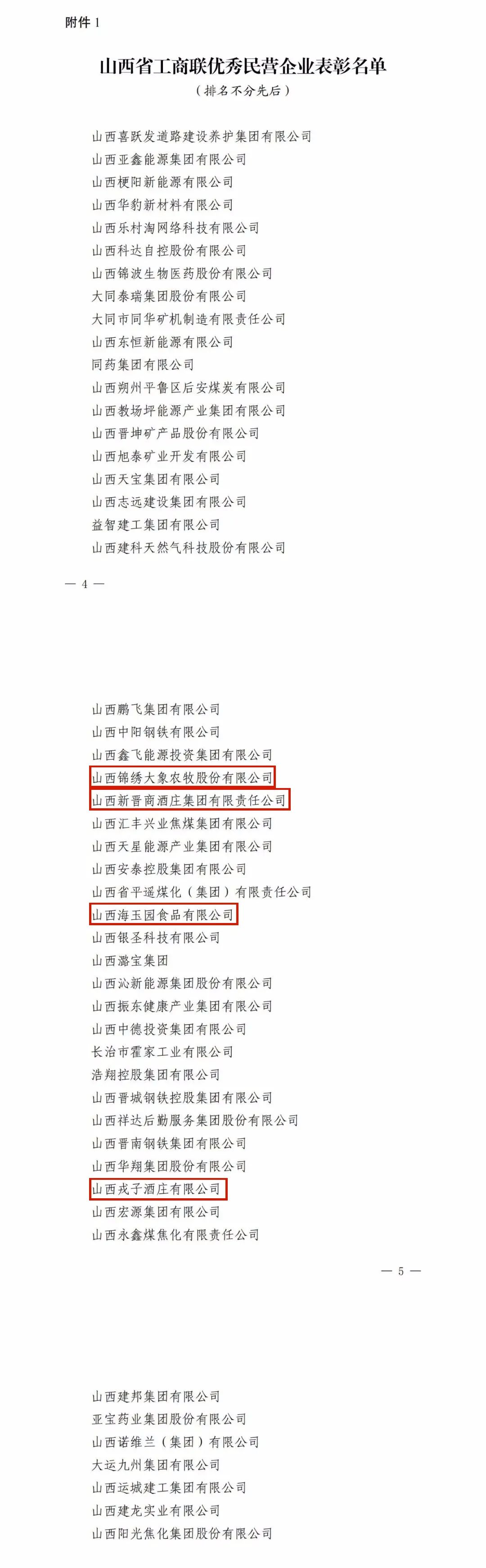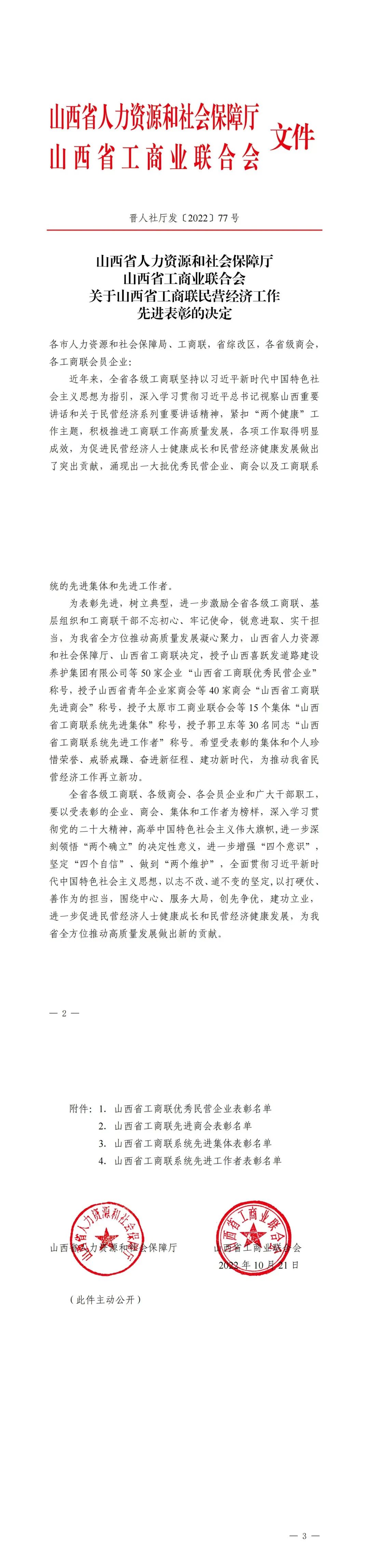 为表彰先进,树立典型,进一步激励全省各级工商联、基层组织和工商联干部不忘初心、牢记使命,锐意进取、实干担当,为我省全方位推动高质量发展凝心聚力,日前,山西省人力资源和社会保障厅、山西省工商联决定,对50家“山西省工商联优秀民营企业”、40家“山西省工商联先进商会”,15个“山西省工商联系统先进集体”,30名“山西省工商联系统先进工作者”予以表彰。其中,我省食品工业企业的优秀代表——山西锦绣大象农牧股份有限公司、山西新晋商酒庄集团有限责任公司、山西海玉园食品有限公司、山西戎子酒庄有限公司获评“山西省工商联优秀民营企业”。