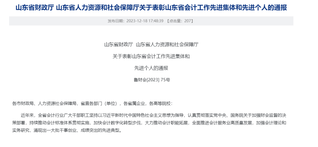 为激励广大会计人员崇尚诚信、勤奋敬业、勇于奉献、开拓创新,经省委、省政府批准,省财政厅、省人力资源和社会保障厅今年在全省各级国家机关、事业单位、企业、社会团体、其他经济组织所属会计机构中,开展了100个会计工作先进集体和100个先进个人评选表彰活动。12月18日,省财政厅、省人力资源和社会保障厅发布《关于表彰山东省会计工作先进集体和先进个人的通报》,山东省农业发展信贷担保有限责任公司计划财务部荣获“山东省会计工作先进集体”荣誉称号。
