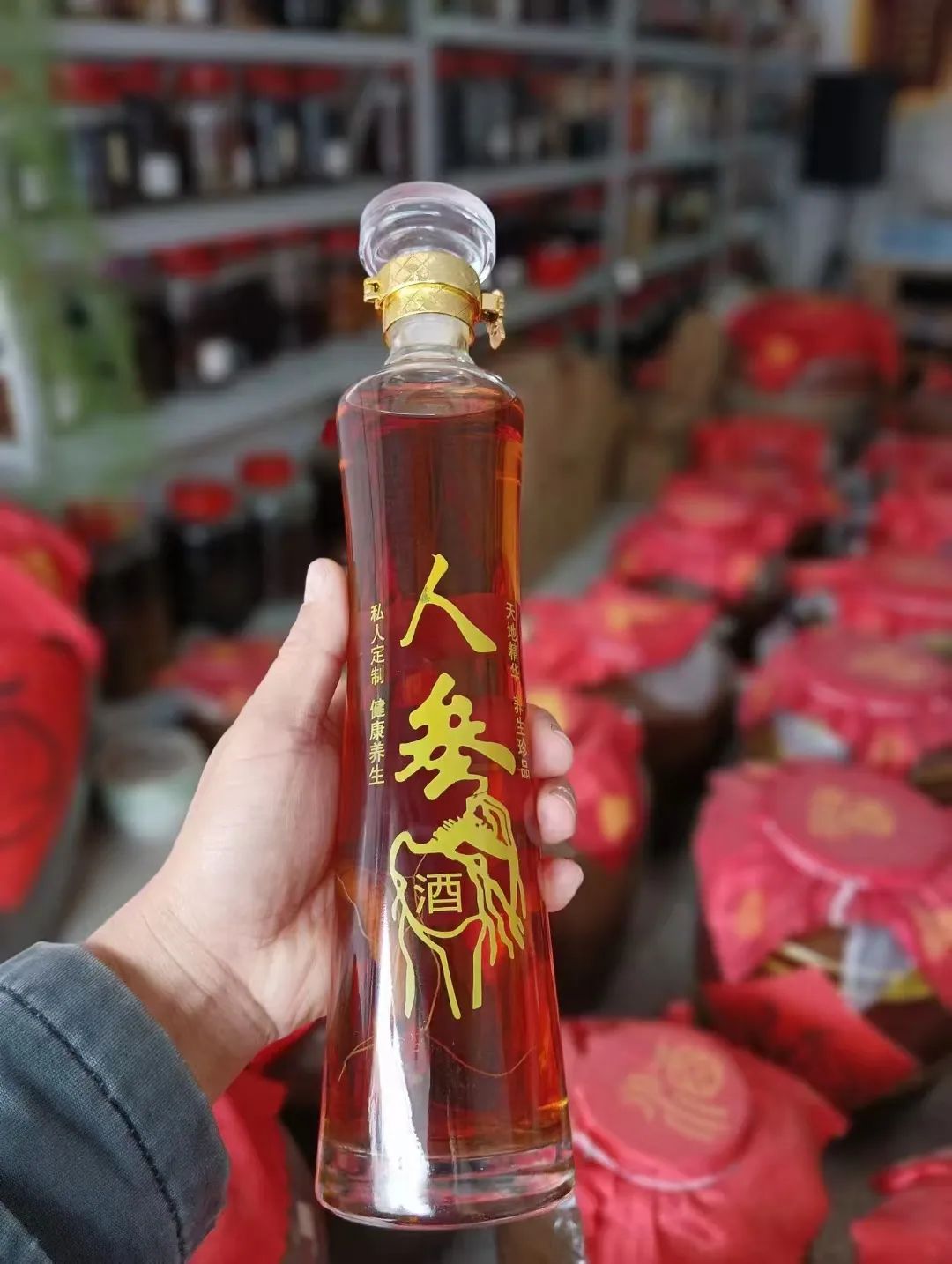 店里还有人参酒等各种泡酒、补酒