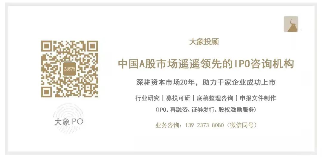 深圳大象投资顾问有限公司前身创建于1998年,总部在深圳,并在北京、杭州、厦门、济南设有办公室。大象投顾是中国最早专注于IPO咨询的机构,也是目前市场占有率最高的机构。以当年在审企业及成功过会企业数量计算,公司已经连续11年排名第一。公司主要为拟上市公司及上市公司提供专业的IPO咨询服务、再融资咨询服务及并购咨询服务。具体内容包括A股IPO细分市场研究、IPO募投项目可行性研究、再融资募投项目可行性研究、并购标的可行性研究。基于自身强大的市场研究能力,我们同时也为拟赴香港及美国上市企业提供独立的第三方行业研究与分析服务。截至目前公司已服务上千家优质中国企业,包括公牛集团、欧派家居、美年健康、香飘飘、珀莱雅、豫园股份、杭可科技、东山精密、跨境通、星辉娱乐、盈峰环境、海格通信、精测电子、创业惠康、天合光能、恒大汽车、TCL科技、美凯龙、苏宁易购、利扬芯片、奥泰生物、贝泰妮、倍轻松等在内的800多家优秀企业成功在境内外资本市场上市,全面覆盖TMT、装备制造、医疗健康、消费品、能源化工、节能环保、汽车及零部件、文化娱乐等主要行业。公司先后荣获国务院发展研究院年鉴指定行业研究机构、年度最佳IPO咨询服务机构、金融咨询服务最佳供应商等多项殊荣,同时也是深圳市上市公司协会、浙江省上市公司协会等协会的《上市公司发展白皮书》指定编著单位。
