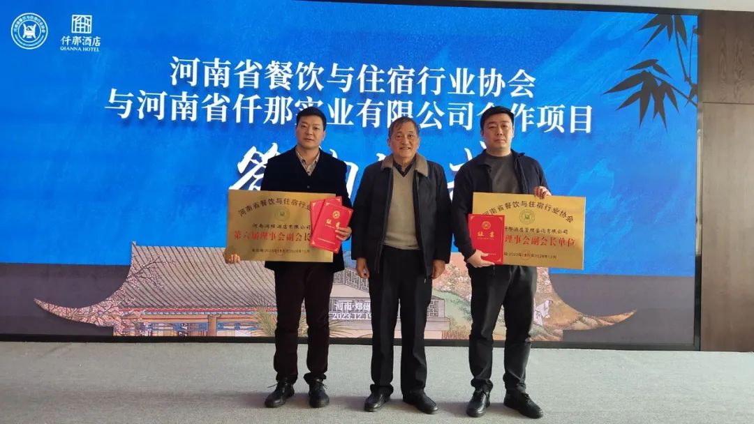 12月19日上午,郑州市龙子湖仟那元熙酒店,河南省餐饮与住宿行业协会(下称“河南省餐住协”)与仟那实业有限公司合作项目签约仪式举行,现场举行了河南省餐住协副会长单位授牌仪式。