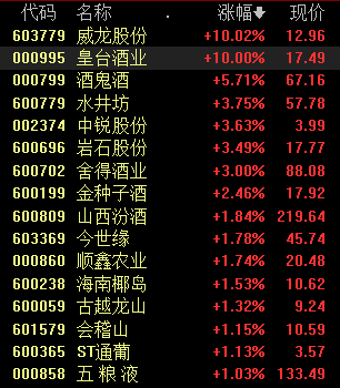 12月21日,白酒概念盘中快速反弹,截至发稿,皇台酒业、威龙股份涨停,水井坊、酒鬼酒、中锐股份等纷纷跟涨。