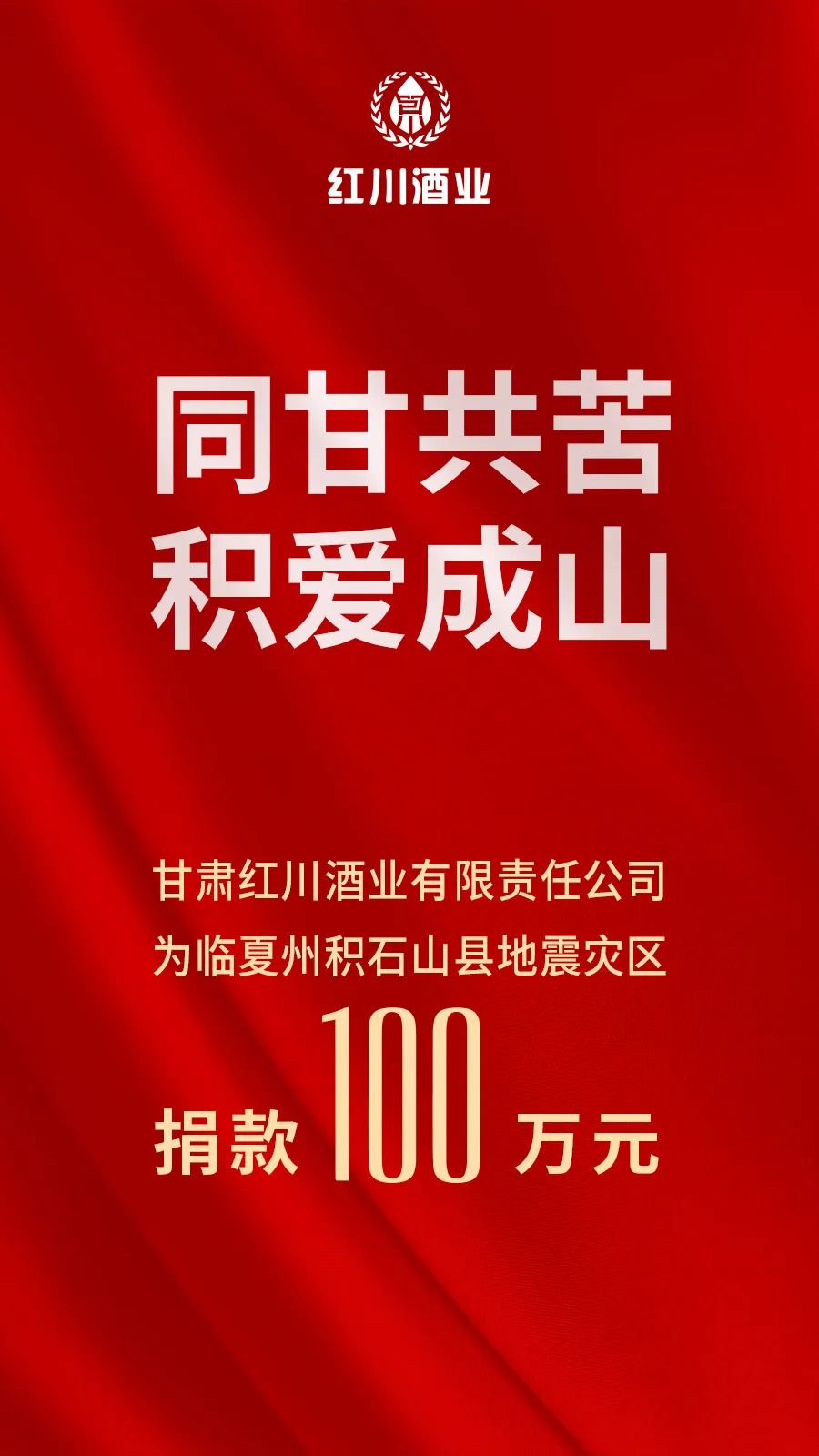 同“甘”共苦,“积”爱成山。红川酒业将与社会各界一道,持续关注积石山抗灾救灾工作,期盼灾区人民尽快恢复正常生活,重建美好家园,让我们共同为积石山灾区人民祈福!