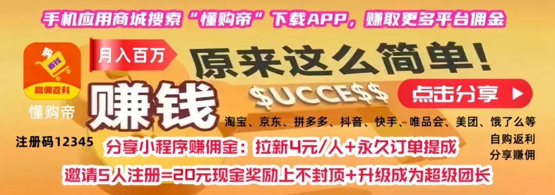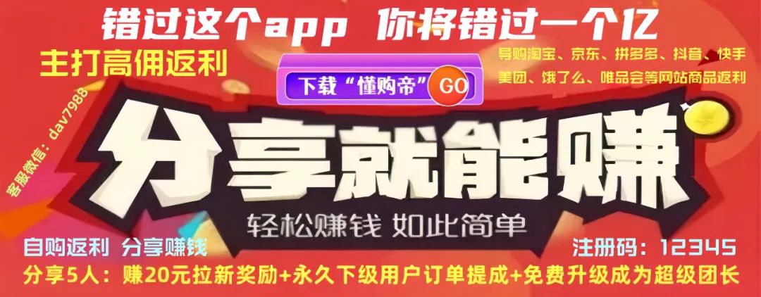 本公众号强烈推荐大家打开手机应用商城搜索“懂购帝”下载高佣返利导购省钱APP 注册码:12345