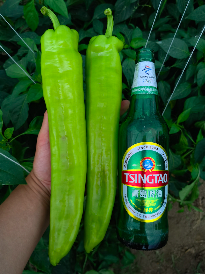 早熟,果色亮绿,果实粗长牛角型。正常气候栽培条件下,一般果长22-28cm,横径5.0cm,辣味中等,结果集中且连续座果能力强。单果重150g,最大果可达半斤,采收期果实间差异小,对不良气候有一定的适应性,产量较高。