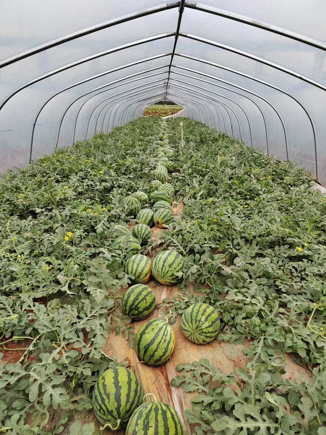中熟品种,果实圆球形,瓜皮绿色且覆墨青色条斑,果肉红色,单瓜重约6公斤左右,中心糖度约13度左右,口感好,品质优,正常气温下,座果至采收约35-38天左右。