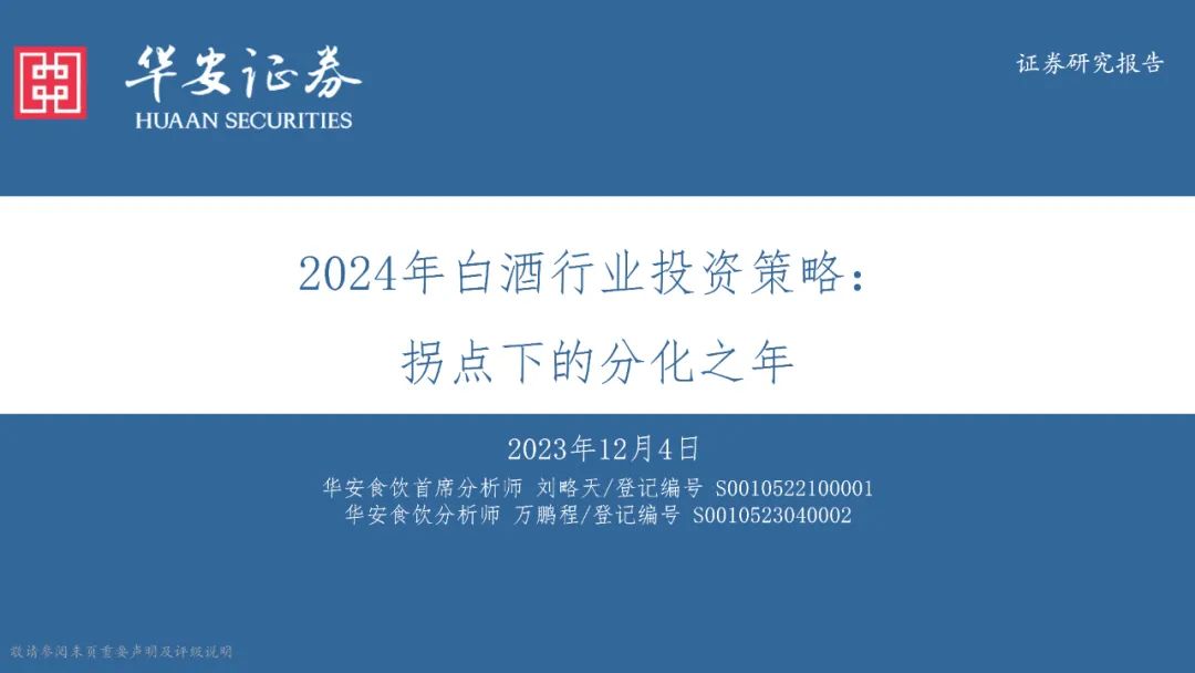 来源:2024年白酒行业投资策略:拐点下的分化之年-20231204-华安证券-22页、感兴趣的小伙伴可到文末阅读原文查看!