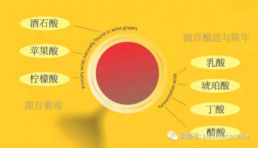 酸是葡萄酒的基本特征之一。酸度赋予葡萄酒酸酸的味道。从根本上说,所有的葡萄酒都处于pH值谱的酸性一侧,大多数葡萄酒的pH值范围在2.5到4.5之间(7为中性)。葡萄酒中有几种不同类型的酸,它们会影响葡萄酒的酸性。葡萄酒中最常见的酸是酒石酸、苹果酸和柠檬酸。