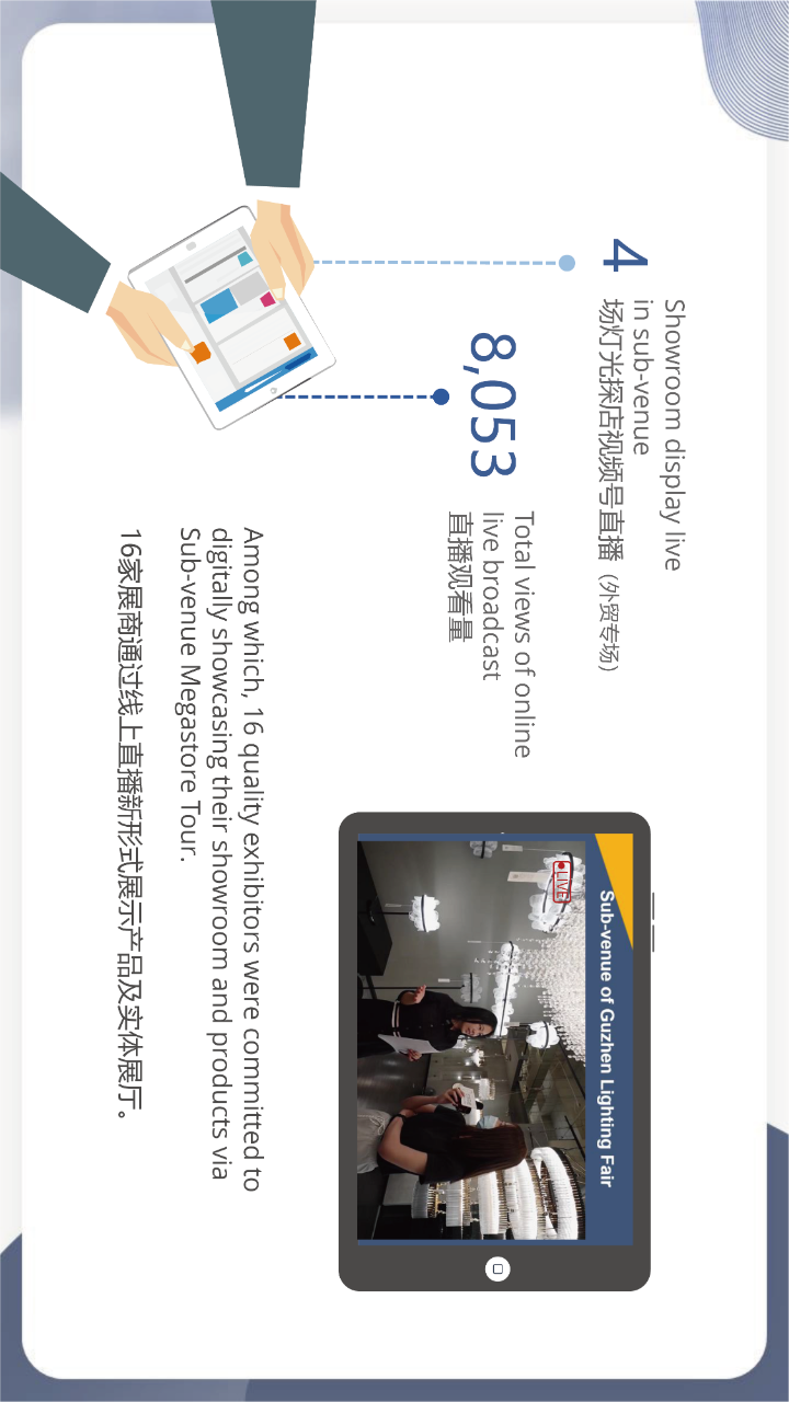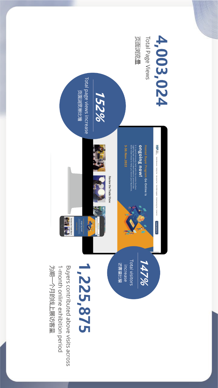 本届全球买家采购行线上展,古镇灯博会强势推出一系列线上活动。通过灯光探店、灯展序章、采购通EZBuy、明人在线等活动,联合镇内分会场、大咖老师、鸿兴创谷及各大展商以网上参展观展、线上直播、社群等形式预测2023灯饰照明新风向,提前引爆全球灯饰采购热潮。依托展网融合型B2B网站——“灯饰在线”,全球买家采购行线上展期间吸引3000+优质品牌展商参展,共计展出28,076件展品。其中吊灯、投光灯、LED灯带、壁灯、台灯等灯饰品类皆是本届展会的热门爆款。灯饰在线页面浏览量达4,003,024次,同比增长152%。访客量达1,225,875次,同比增长147%,访客范围覆盖全球147个国家。1000+新注册买家发布求购询盘361次,200+企业深受灯饰买家喜爱,成功匹配线上贸易40次。4场外贸灯光探店直播,收获8,053次直播观看量,16家展商通过线上直播方式展示热门灯饰产品及潮流灯饰展示厅,让灯饰贸易买家贸易采购更高效。活动期间,全球买家采购行线上展在FaceBook、Twitter、Instagram、灯饰在线网站等线上渠道吸引了2,200,000+人次了解本次展会,收获了54,000+的点赞数。想要了解更多详细信息的观众,快来看看小管家贴心整理分析的2022年古镇灯博会全球买家采购行线上展数据资料,里面一定有你感兴趣的内容!