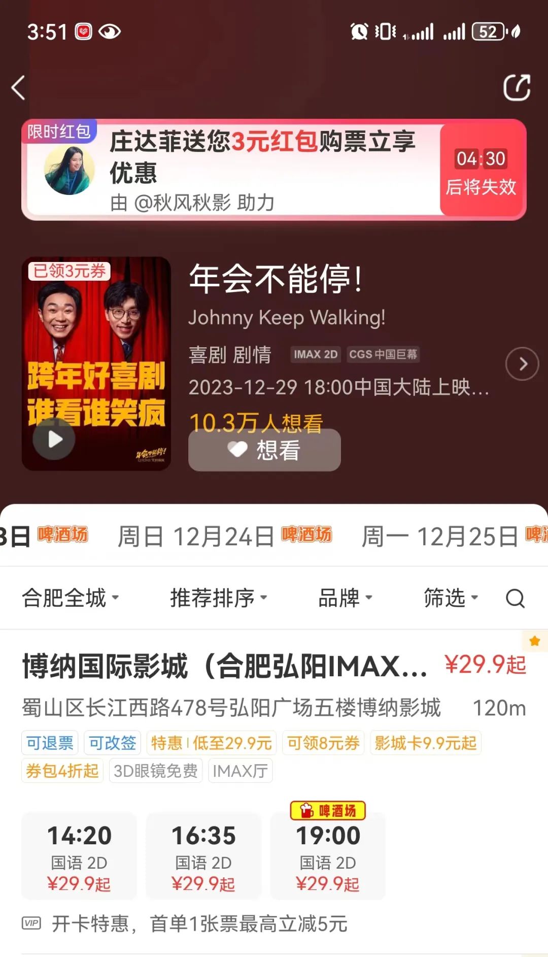 活动场次:博纳国际影城合肥弘阳IMAX店 19:00