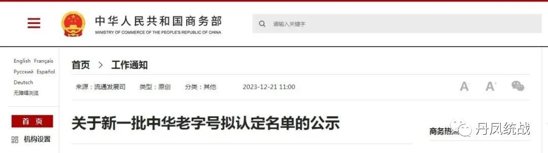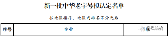 关于新一批中华老字号拟认定名单的公示全文如下:
