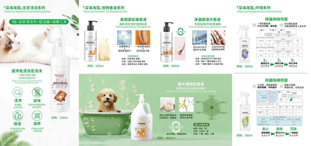 致力于温和安全洗护理念,和消费者一起共创全线深海海藻添加的洗护产品。打造宠物香波、五官清洁、环境管理三大板块,专研六款明星产品,更满足对功效的需求与天然温和的追求。