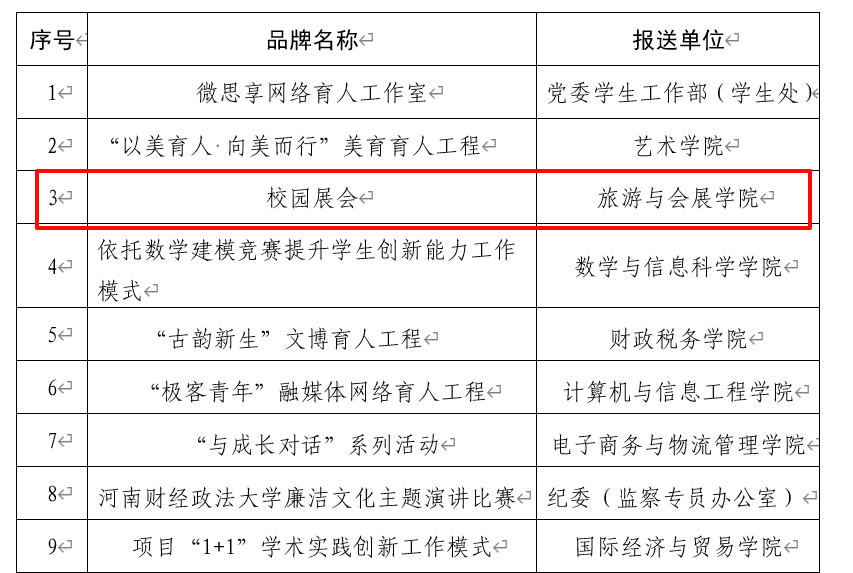 近日,校党委下发《关于表彰第四届“十大校园文化品牌”的决定》(校党〔2023〕153号),我院申报的“校园展会”项目被授予“十大校园文化品牌”荣誉称号。