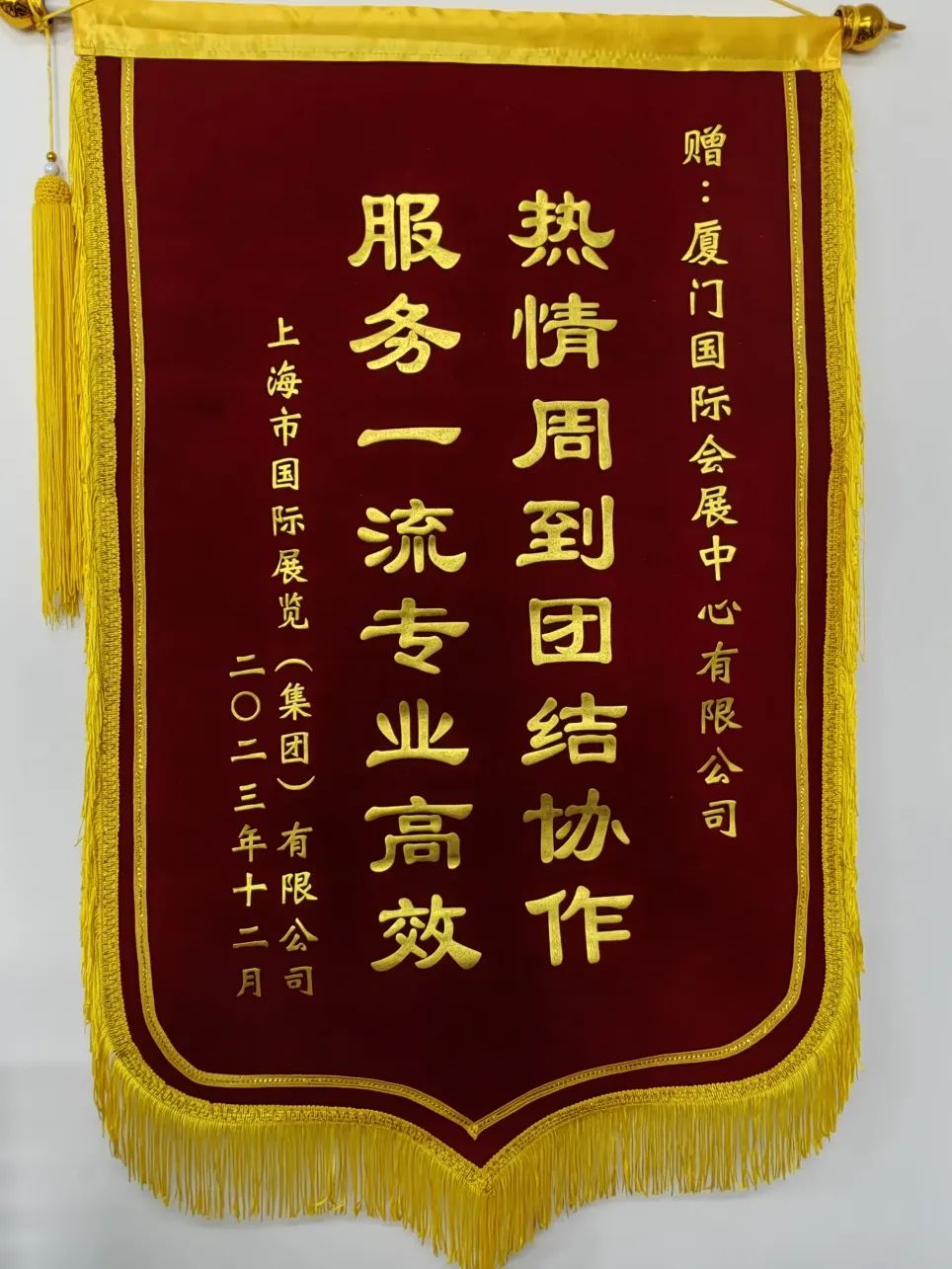 近日,建发会展收到2023国际摄影旅拍展暨婚纱摄影器材、儿童摄影、婚纱礼服、彩妆造型及时尚配饰展组委会——上海市国际展览集团的锦旗,感谢建发会展对其首次异地办展所给予的大力协调和支持,为整场展会提供了有力的保障,让展会得以平安有序的举办,并高度肯定了建发会展团队认真负责的工作态度、奉献精神,以及专业、周到、细致的服务保障工作。