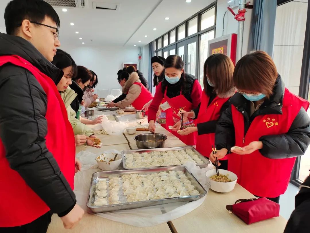 一大早,志愿者提前布置现场,早早将准备好的食材安排到位,随着家人们的到来,各个挽起袖子,干劲十足,参与包饺子活动当中。切菜、拌馅、擀皮、包饺子,大家各显身手,相互配合,分工合作,一边包着饺子,一边聊着自己家乡过冬至的习俗,用自己拿手的方式包着各式各样的饺子,现场欢声笑语不断,到处洋溢着“家”的味道、“家”的温暖,大家相聚一起,更是感受到了“邻里共同体”大家庭的情谊,感受大冬至的乐趣。