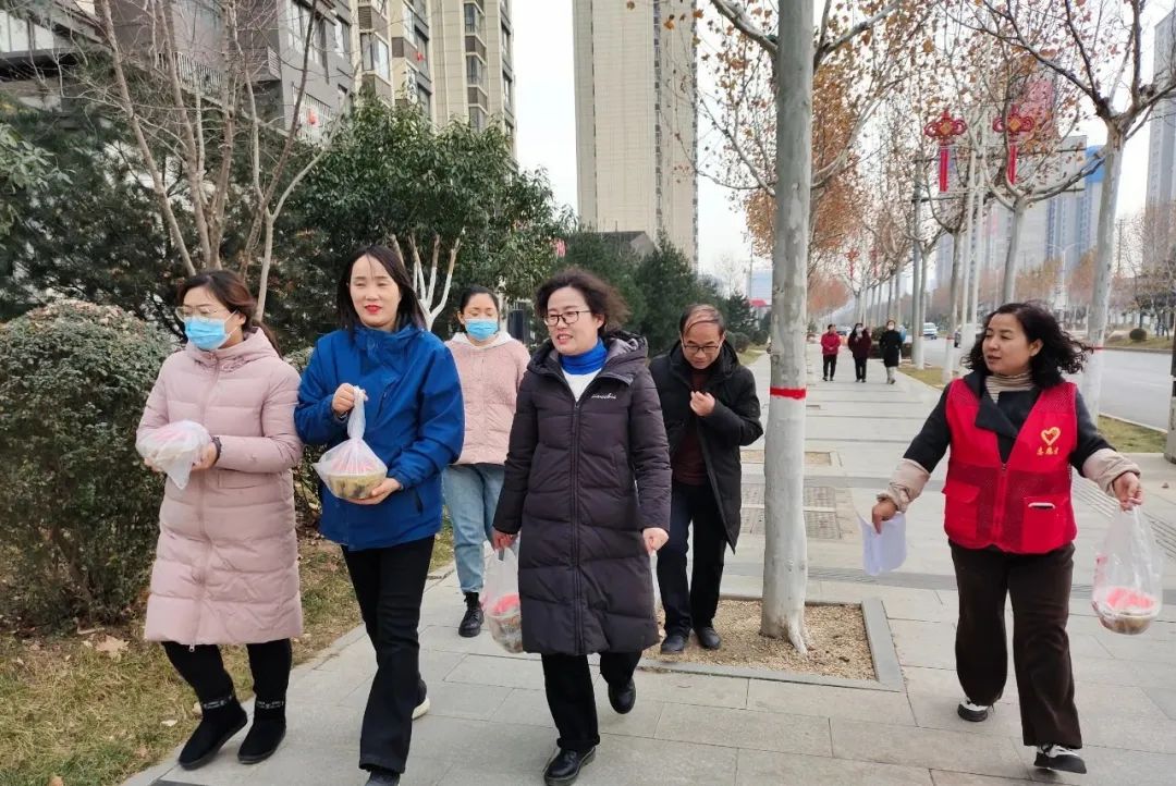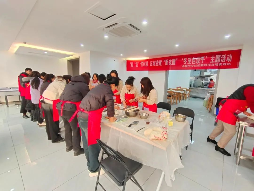 俗话说“冬至不端饺子碗,冻掉耳朵没人管”。为传承和弘扬中华民族传统文化,增进辖区单位、居民之间的交流。12月22日上午,会展中心社区新时代文明实践站开展“转‘饺’遇到爱 区域党建“朋友圈”‘冬至包饺子’主题活动。活动邀请了“双报到”单位区农业局,区直机关工委、区总工会、千渭市场所;驻辖区单位养老服务中心、育才集团(奥斯顿酒店)、鑫源宴会厅、汇丰市场、盛德商贸、奥莱购物公园、大明建材、宝鸡会展中心、辖区物业公司以及居民等家人共同参与。