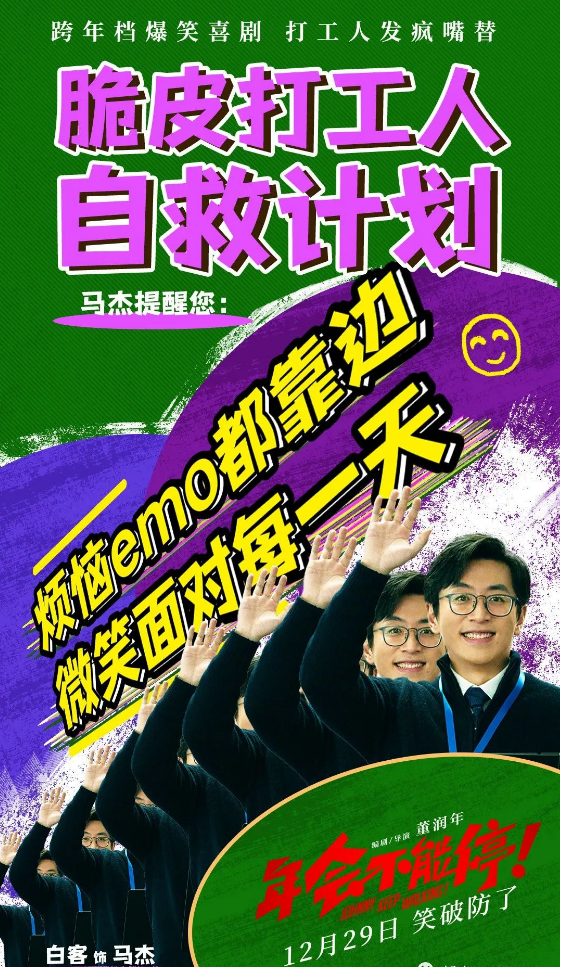 电影《年会不能停!》取材自真实打工人生活,深入挖掘现代职场中的种种矛盾和趣事,展现那些“人间真实”的职场生态,与千千万万个“我”的真实经历息息相关。