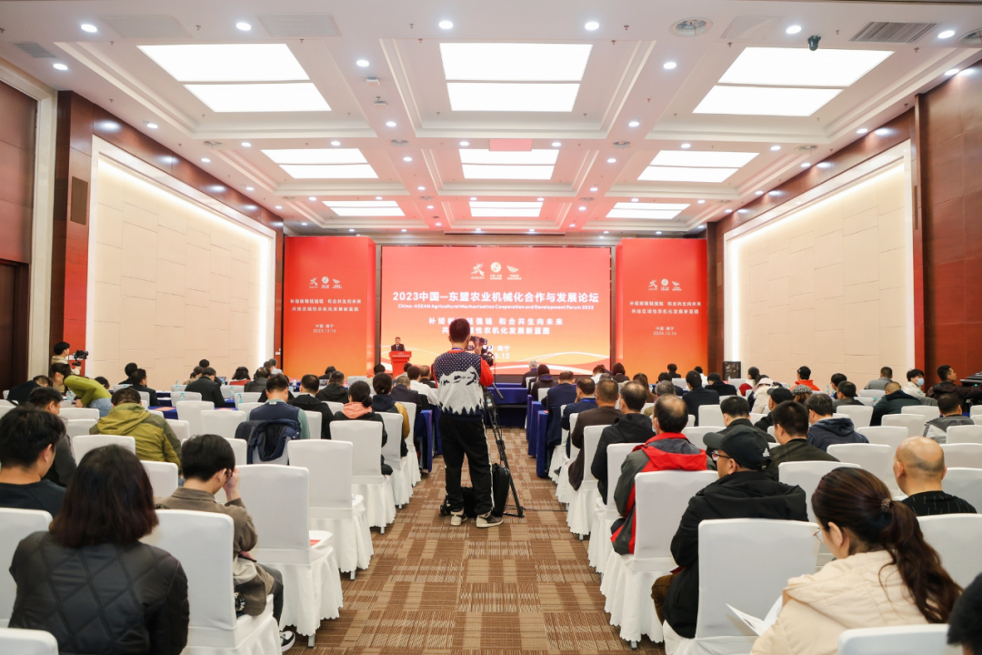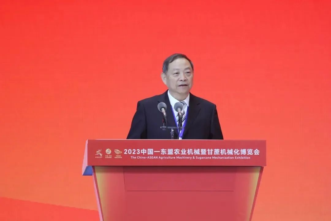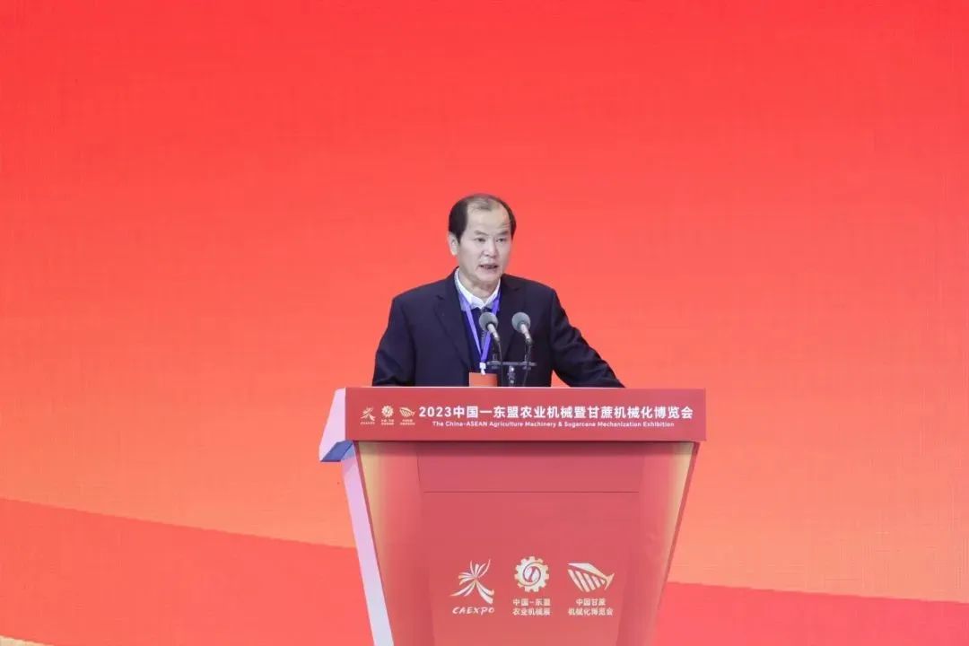 韦波致辞时指出,习近平总书记高度重视广西农业发展,2017年和2021年两次视察广西,先后作出“扎实推进现代特色农业建设”和“立足林果蔬畜糖等特色资源,打造一批特色农业产业集群”的重要指示;就在12月14日,习近平总书记再次到广西考察调研,并深入甘蔗主产区之一的来宾市,对甘蔗良种繁育、种植收成、糖产业发展等情况作出重要指示,为广西发展现代特色农业尤其是蔗糖产业指明了方向、提供了遵循。韦波指出,农业机械化高质量发展方面,广西深入贯彻落实党中央关于农业机械化决策部署,扎实推进并取得较好成效。广西农机总动力达3825万千瓦,开展机械化作业超过1000万亩,主要农作物耕种收综合机械化率达69%。在甘蔗机械化方面,广西大力开展农机装备研发攻关,积极促进农机农艺相互融合,推动甘蔗生产机械化水平不断提升,预计2023年糖料蔗耕种收综合机械化率达70.5%,比2020年增长5.02个百分点。韦波指出,东盟国家的地理条件、气候环境、生产方式与我国广西等南方地区相似度较高,对农业机械有相同的需求,市场空间广阔。预计2023年我国农业机械出口额超600亿美元,其中东盟市场占了整个出口总量的20%以上,展示了中国和东盟双方在农业机械交流合作的巨大潜力。希望通过博览会这个平台,进一步深化中国与东盟各国在农机装备制造、农机贸易往来方面的合作,推动广西和各兄弟省份、各科研院所以及企业在农业科技创新、农机产品研发、蔗糖产业升级等方面的深入交流,实现互惠互利、合作共赢,共同提升重要农产品供给保障能力。