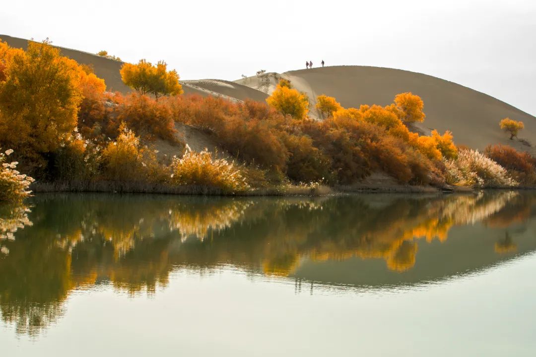 2017.10.23 新疆巴音郭楞蒙古自治州尉犁县 南疆罗布民族村是落尉犁县的一处风景区,集合了沙漠,胡杨,河流,湖泊等自然风景,具有特殊的自然条件和特殊的自然条件。而在秋天,罗布人村落里的胡杨更是呈现出一幅让人心旷神怡的壮观景象。画面上在阳光的照耀下水中倒影更是为深。
