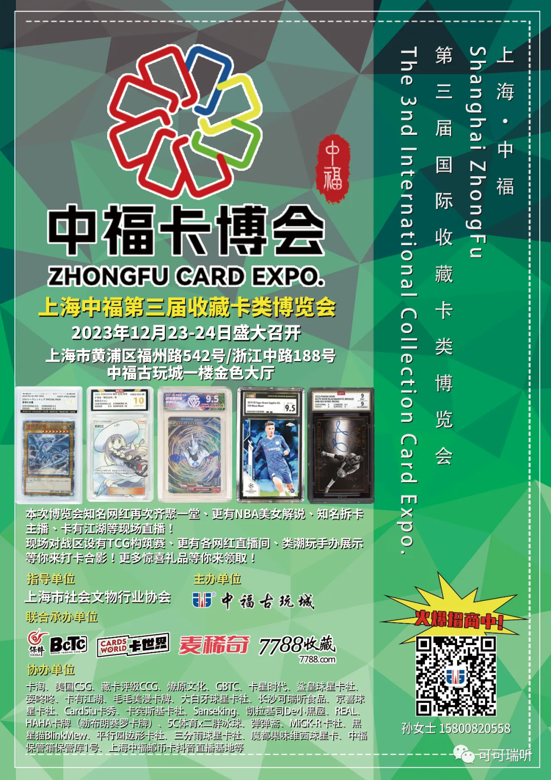 时间:2023年12月23-24日 (早上10点——晚上6点)地点:上海市黄浦区浙江中路188号/福州路542号公交线路直达:九江路浙江中路站:20路、37路、49路、167路、330路、805路本次活动购买可可瑞听上古神兽食玩礼包,每份赠送一张可可瑞听X保粹X中福卡展定制标签评级卡,更有机会拆到画师亲签评级卡哟,数量有限,先到先得!上古神兽食玩礼包内容如下: