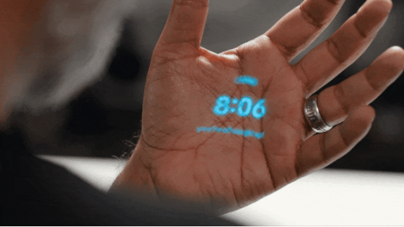 顾名思义,这款设备小巧轻便,可以通过磁吸方式佩戴在身上任何地方,并且还内置了OpenAI的GPT大模型。除了可操控的触摸板,Ai Pin有个让许多人尖叫的功能——激光投影系统可以直接在手上投屏。食指与拇指互点,即可切换天气、时间、日期;动一动手指,就能搜索查询、切换音乐;摊开掌心,就能查看别人发来的消息,然后回过去。
