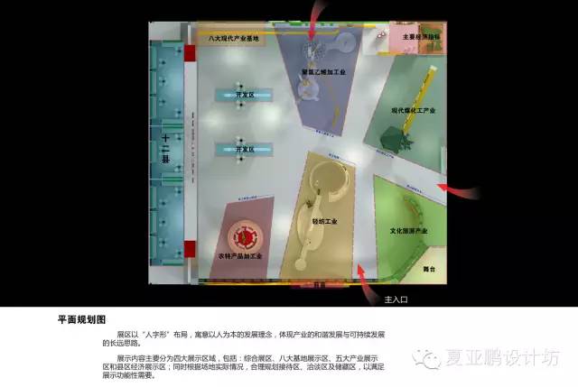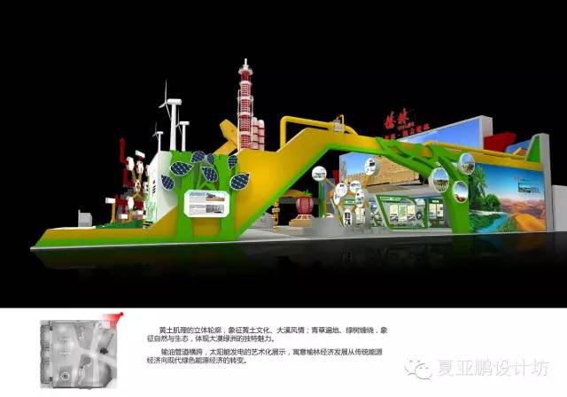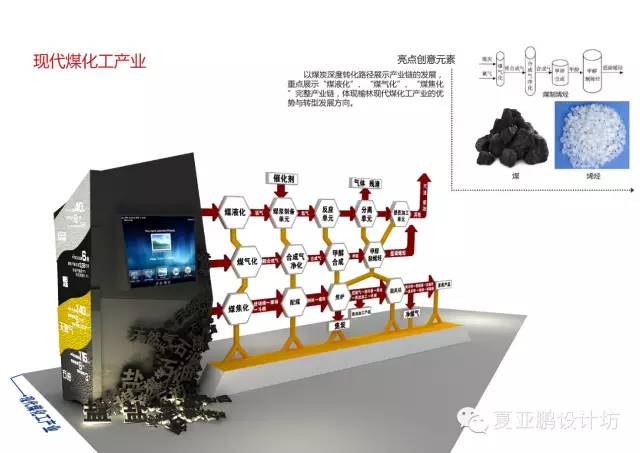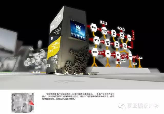 为此,我们在展览设计之中,将展示形式与发展政策相融贯通,将“创新引领”的思路,通过精神化的凝聚艺术化呈现;将“主动转型”的举措,以形态化的效果寓意化呈现。最终描绘出一派积极转变,深化改革,蓬勃发展的榆林经济“升级版”的社会实景!