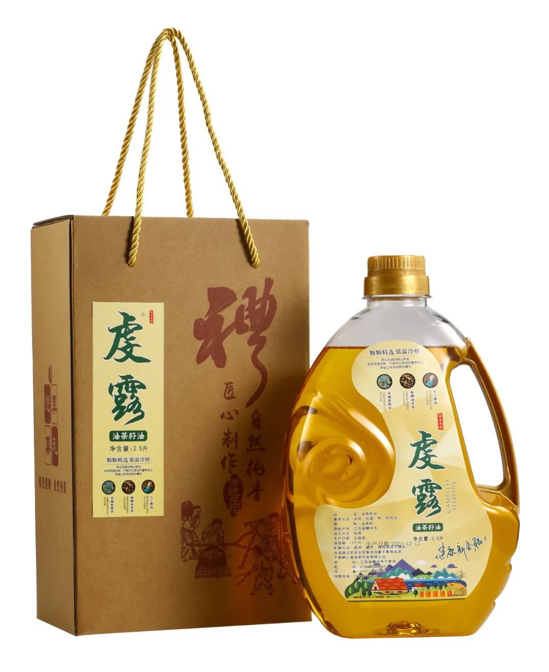 “虔露”茶油是一款优质农副产品,种植全过程以有机肥为主,并采用营养成分保留最为完整的冷榨法榨油,严格按照“绿色食品”“有机食品”标准要求生产,油色亮黄,品质纯净、清亮透明、气味清香、味道纯正,2018年2月被核准为国家“地理标志证明商标”。