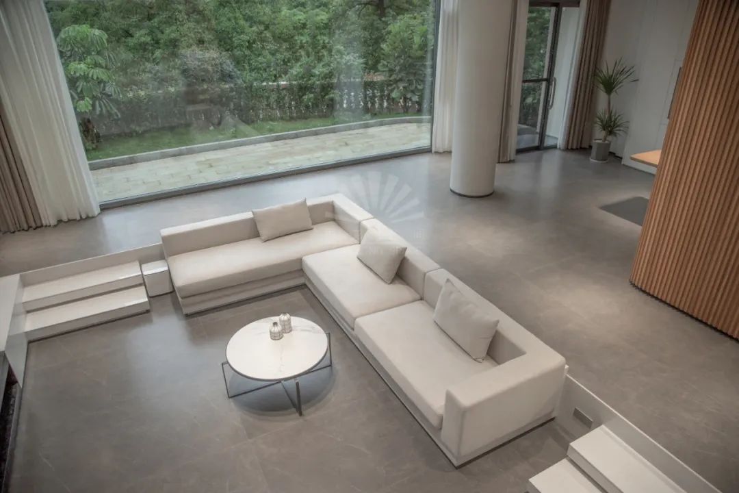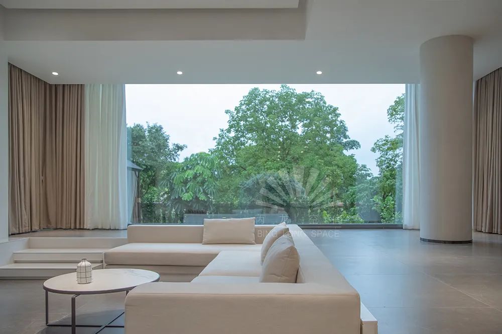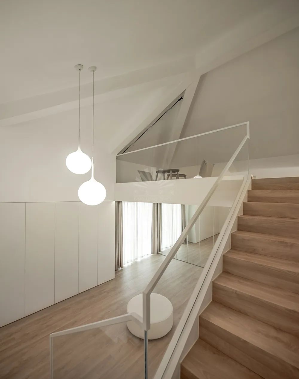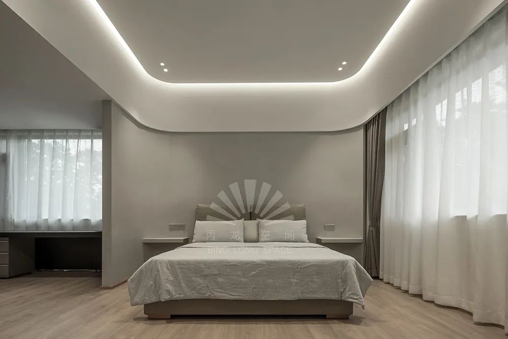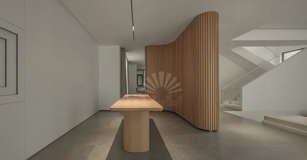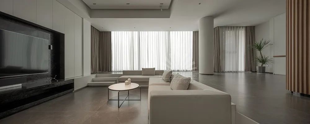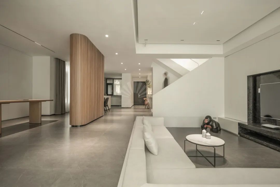 目前,2022第十八届设博会正在火热进行中,组委会将充分利用设博会、中装协环艺分会、新家网等官方网站和环球装饰设计、设博会等三个公众号及短视频新媒体矩阵,同时联合新浪家居、中装新网、腾讯家居、网易家居、凤凰家居等权威行业媒体,对历届部分优秀华鼎奖获奖设计师、获奖机构及设博会嘉宾进行专访并推广,共同探讨设计行业的经营现状以及未来发展趋势。本期我们分享一篇2022设博会华鼎奖获奖设计师赵治军的设计作品。少不是空白,而是精简,多不是拥挤而是完美。主张简化结构体系,精简结构构件。室内简洁流畅的结构线条与空间融合一起,使整个空间沉静如一首诗。Less is not blank, but concise, more is not crowded but perfect. It advocates simplifying the structural system and structural components. The simple and smooth structural lines in the room are integrated with the space, making the whole space quiet as a poem.一楼大厅采用大面积透明玻璃,引入自然光使里外相连,达到串联空间的效果。阳光将自然的婆娑光影投射到室内,视线在开放性空间中向外无限延伸,使得室外向内渗透,室内向外延展。The hall on the first floor is made of large area transparent glass, and natural light is introduced to connect the inside and outside, so as to achieve the effect of connecting spaces. The sunlight projects the natural whirling light and shadow indoors, and the line of sight extends infinitely outward in the open space, making the outdoor penetrate inward and the indoor extend outward.跟随四季及日夜,不断变换的光影;在室内各个角落流动,可使空间栩栩如生。让人感受到静止的空间,却也有着丰富的表达和情绪。Follow the changing light and shadow of the four seasons and day and night; Flowing in all corners of the room can make the space lifelike. Let people feel the static space, but also have a wealth of expression and emotion.采用极简的建筑结构、精简的局部构建,人的意识会跟随视线顺延、通达;精神也会随之自然流畅。With the extremely simple building structure and simplified local construction, people's consciousness will follow the line of sight and be accessible; The spirit will flow naturally.由于一楼大厅打通为开放式空间,为了使之不会过于直白、单调,“L”型隔断墙,便是用最少的“笔画”;分隔了客厅、餐厅、工作区,保证了空间的流通、却隔而不断。As the lobby on the first floor is open, in order to make it not too straightforward and monotonous, the "L" partition wall uses the least "strokes"; The living room, dining room and working area are separated to ensure the circulation of space, but they are separated continuously.平行处的另一端设计了与之相对应的柱体,柱体采用圆形设计,与”L”型隔断墙的圆弧边相互协调;两者在大厅中相互呼应,协调而平衡。At the other end of the parallel part, a corresponding column is designed. The column is circular in design, which is in harmony with the arc edge of the "L" type partition wall; They echo each other, coordinate and balance in the hall.隔断墙与餐桌自成一体,洄型动线增添了空间的趣味性,原木材质的立体呈现使大片浅色系空间更趋于沉稳、平衡。The partition wall and the dining table form a whole. The moving line adds interest to the space. The three-dimensional presentation of the log material makes the large light color space more stable and balanced.整个客厅采用包围、下沉式的空间改造;通过高低错落的视觉差,达到分区效果;下沉式空间设计的优势在于,不需要增加任何点缀、隔断,便可实现分区目的。The whole living room is transformed into an enclosed and sunken space; The effect of zoning is achieved through the visual difference between high and low; The advantage of the sinking space design is that it can achieve the purpose of zoning without adding any embellishment and partition.同时,这种包裹感犹如在母体中一般使人感到安稳、放松,与家人之间的互动也会更为亲密,通过改变空间与人的位置关系,给人予以精神上的放松、疗愈。At the same time, this sense of wrapping makes people feel secure and relaxed as if they were in the matrix, and the interaction with their families will be more intimate. By changing the position relationship between space and people, people can be spiritually relaxed and healed.阶梯的形状本身就是一件具有视觉冲击力的艺术品,所以楼道的设计上只需做减法,以凸显出它本身的次序和优雅。The shape of the stair itself is a work of art with visual impact, so in the design of the corridor, only subtraction is needed to highlight its order and elegance.纯白的颜色,线条清晰有力,利用不同时段的自然光,赋予楼道间丰富的明暗表达。人类视觉的感光系统,将会极其敏感地捕捉到细微末节的变化,充分激活人们的想象空间。The pure white color and clear and powerful lines make use of the natural light in different periods to give the corridor a rich expression of light and shade. The photosensitive system of human vision will be extremely sensitive to the subtle changes and fully activate people's imagination.二楼的一间卧室,与阁楼相连接;入门处的“悬空墙”,一是卧室的隔断,又是上下空间的链接。A bedroom on the second floor, connected with the attic; The "hanging wall" at the entrance is not only the partition of the bedroom, but also the link between the upper and lower spaces.当我们身处阁楼望向卧室时,如同是一个上帝视角的“大我”在观察“小我”;通过空间制造这种置外、高位的角度,通过反复从一个观察者与被观察间的角色切换,在高低错落、里外相连的变化空间