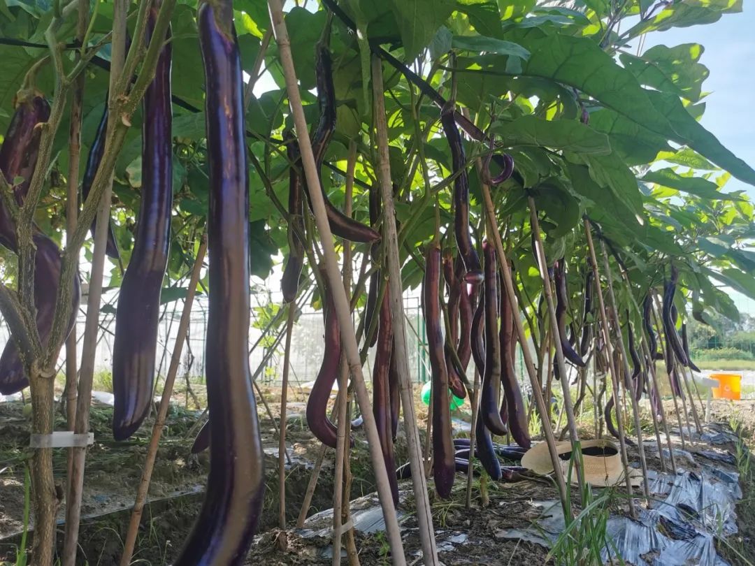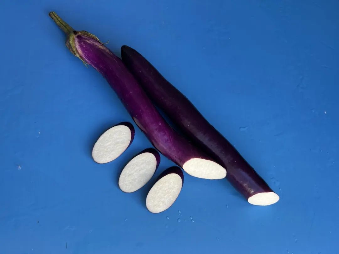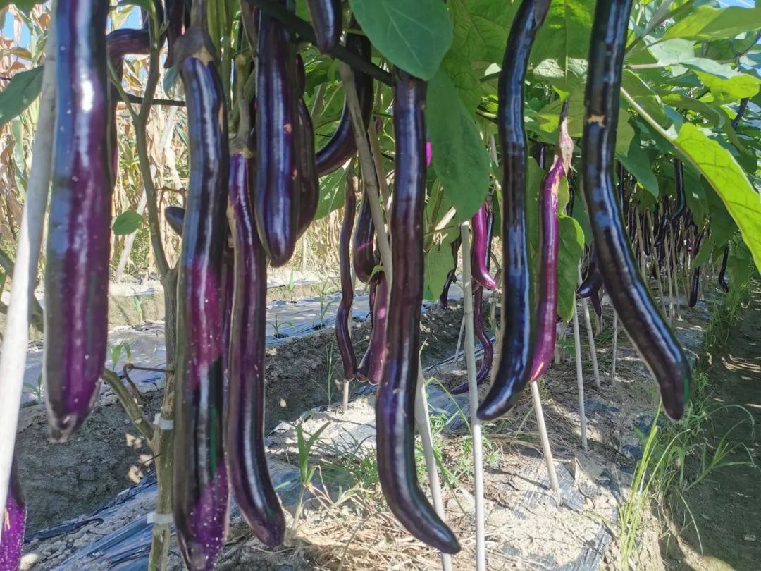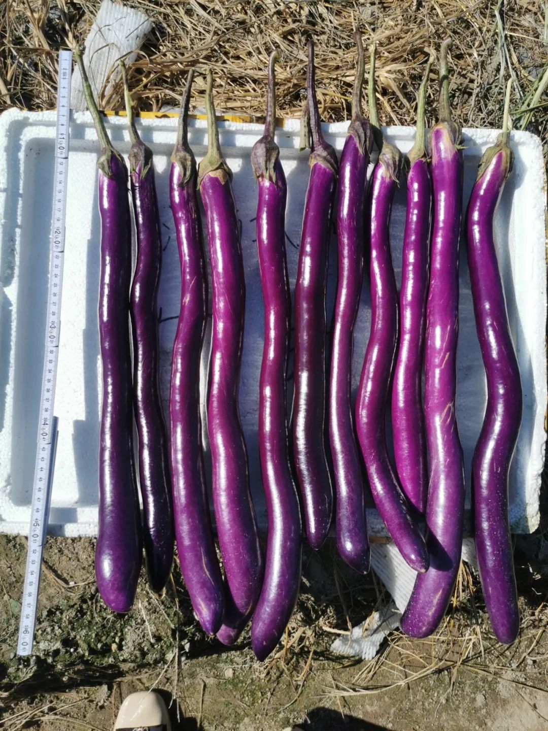 中熟,果形长直,适收期单果150-180g左右,果实纵径50cm左右,横径约3cm,果萼紫色,果皮 色泽亮紫。果肉白色,肉质细嫩。
