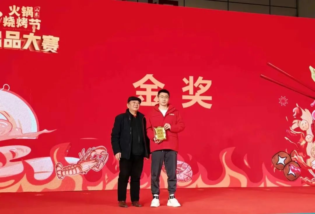 国家一级评委、山东省烹饪协会监事长、济南烹饪协会会长李建国为获得金奖的企业进行颁奖。