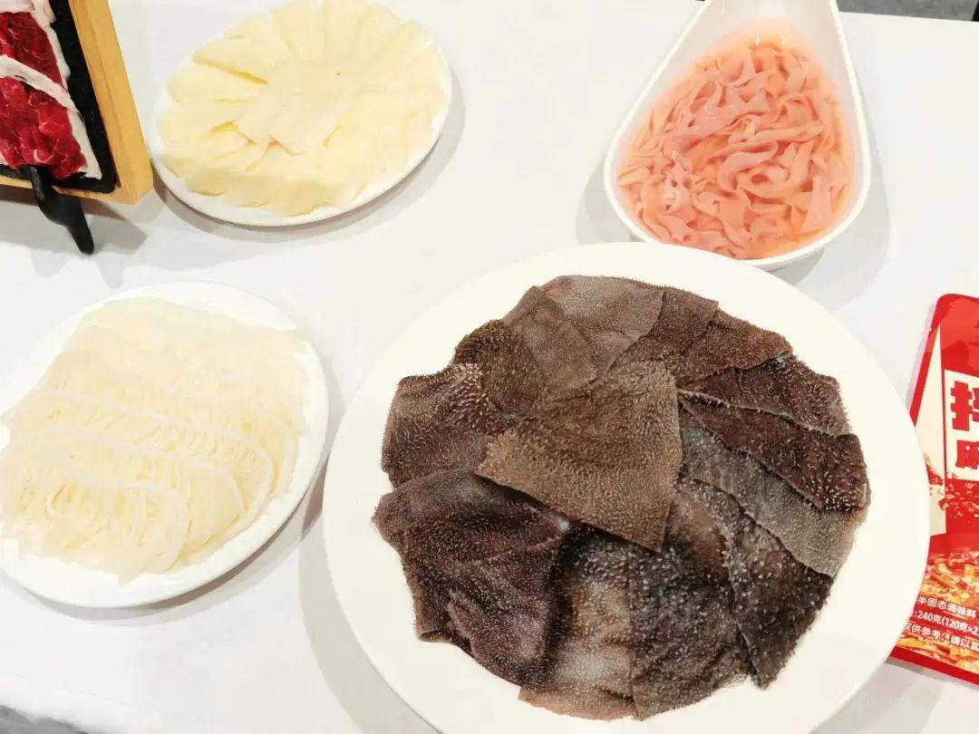 今天在山东国际农业博览会展会期间还举行2023首届火锅涮品出品大赛,本届大赛有二十余家餐饮食材火锅企业携带数十款产品参加。