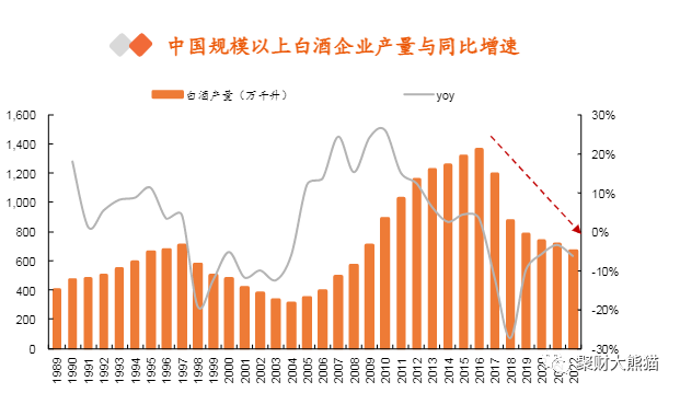 白酒经过多年发展,已经进入存量时代,在行业供给侧优化的大背景下,“少喝酒,喝好酒”的观念逐渐深入人心。据中国酒业协会统计,2022年规模以上白酒企业总产量为671万升,同比下降6%,这是自2016年白酒产量达到高峰之后,已经持续下滑6年。