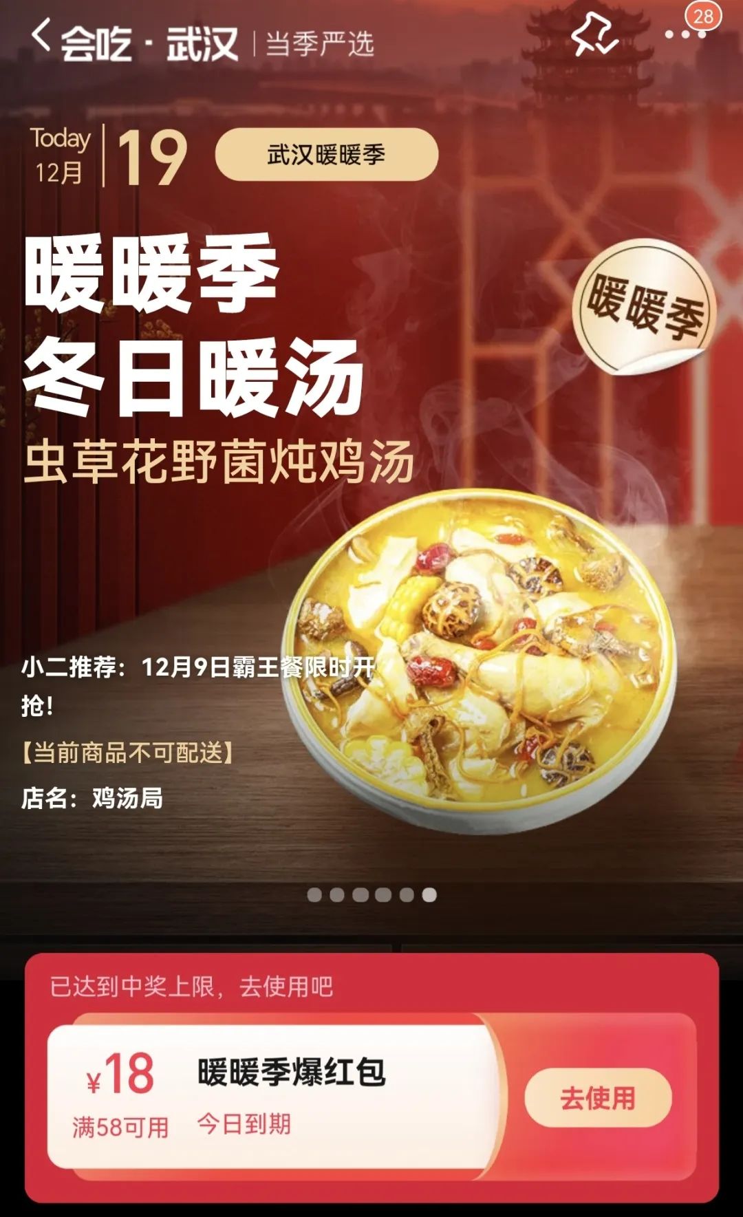 饿了么平台联合武汉餐饮业协会拿出1000万元暖冬红包请你喝汤!